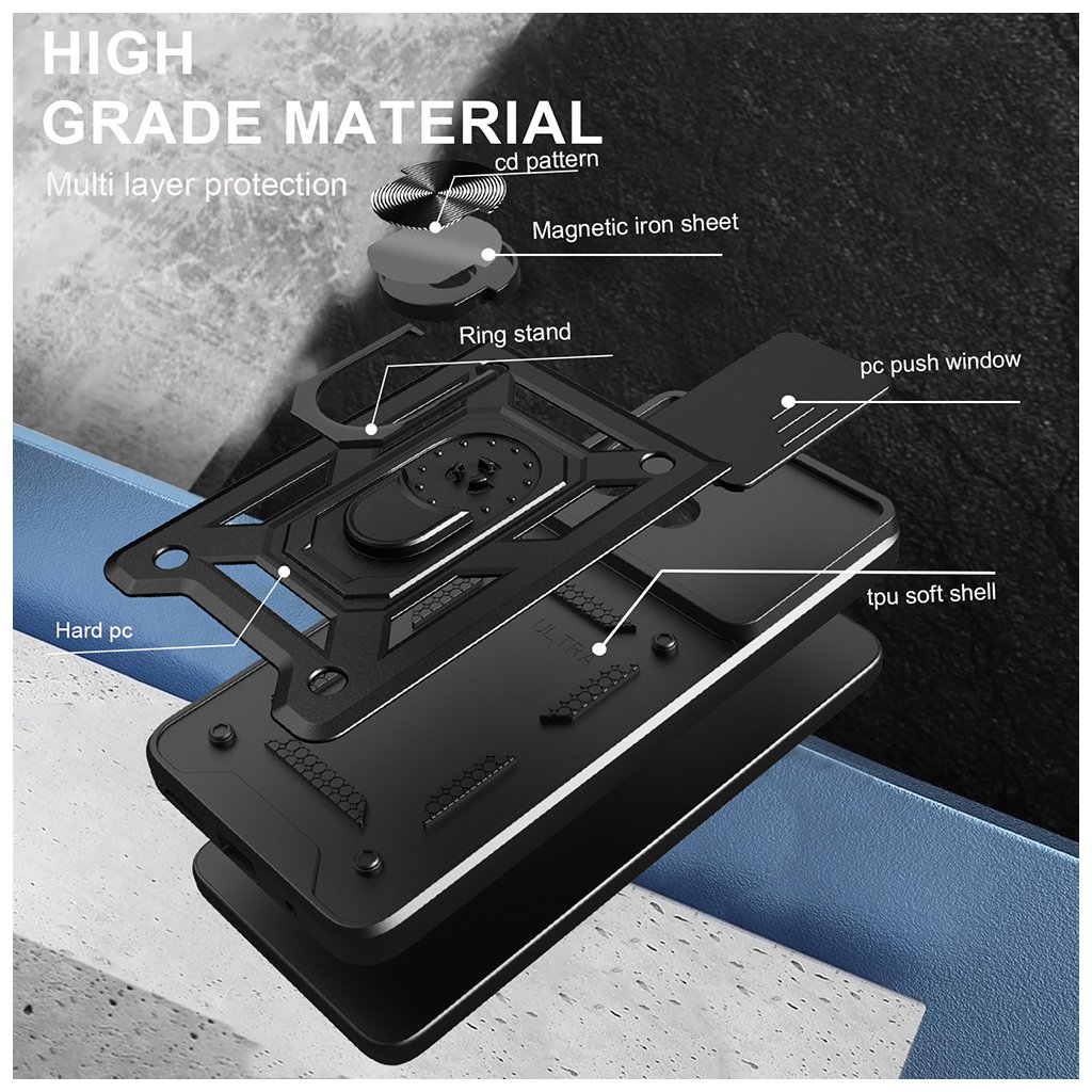 - Ochrana fotoaparátu: **Integrovaný posuvný kryt** pre maximálnu ochranu šošoviek.