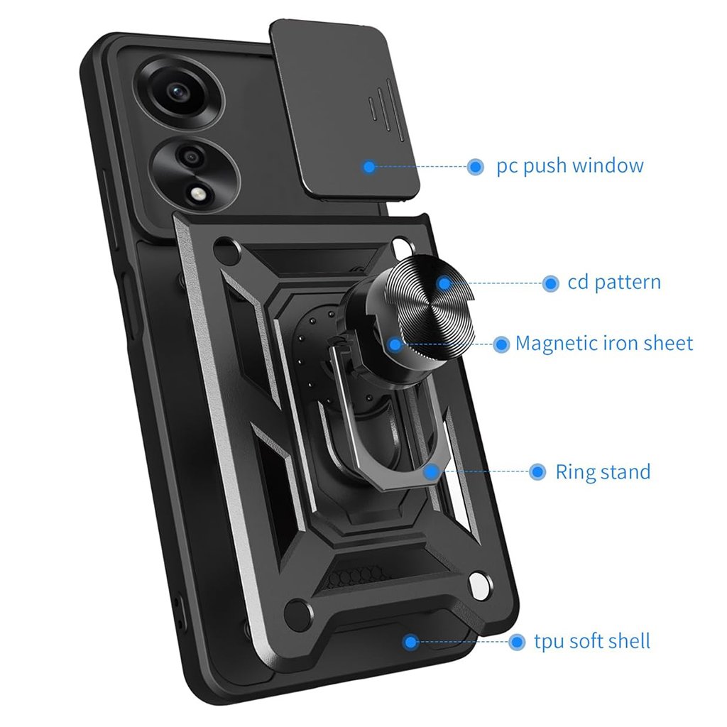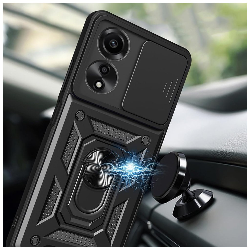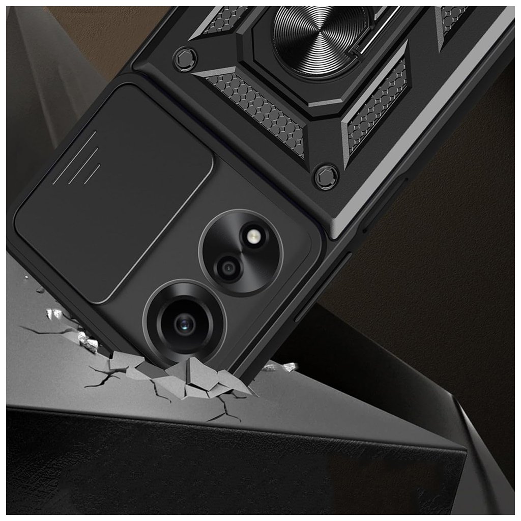 Predstavujeme Techsuit CamShield Series, inteligentné riešenie pre každého, kto vyžaduje prvotriednu ochranu za rozumnú cenu pre svoj telefón Oppo A40 4G alebo A60 5G. Tento kryt v elegantnej čiernej farbe je navrhnutý tak, aby poskytoval maximálnu bezpečnosť a zároveň dopĺňal moderný dizajn vášho zariadenia. Dizajn a funkčnosť Kryt Techsuit CamShield Series sa pýši robustným a funkčným dizajnom. Je vyrobený z kombinácie mäkkého TPU materiálu pre tlmenie nárazov a pevného PC (polykarbonátu), ktorý zaisťuje celkovú odolnosť. Jeho zadná strana je opatrená výrazným, takmer "pancierovým" vzorom s textúrovanými plochami, ktoré nielen skvele vyzerajú, ale aj zlepšujú úchop a minimalizujú riziko vykĺznutia telefónu z ruky. Povrch je navrhnutý tak, aby bol odolný proti odtlačkom prstov.- Integrovaná posuvná krytka fotoaparátu (CamShield), ktorá spoľahlivo chráni objektívy pred poškriabaním a nečistotami.
