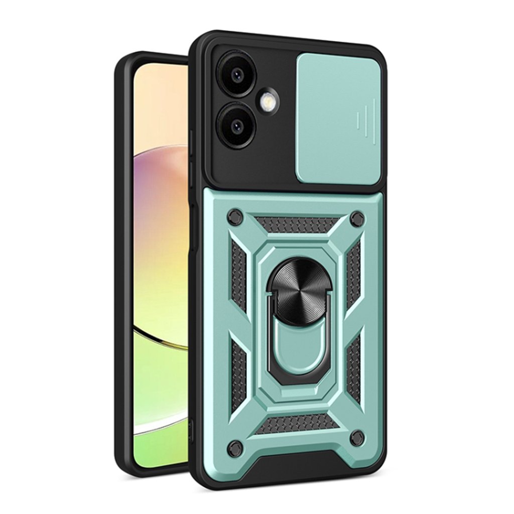 Predstavujeme vám ochranné puzdro Techsuit CamShield Series, ktoré je navrhnuté tak, aby poskytovalo vášmu telefónu Samsung Galaxy A06 komplexnú ochranu bez kompromisov. Tento kryt v elegantnej zelenej farbe kombinuje robustný dizajn s praktickými funkciami, ktoré oceníte v každodennom živote. Puzdro Techsuit CamShield Series sa pýši moderným a odolným vzhľadom. Jeho zadná strana je tvorená kombináciou pevného PC a mäkkého TPU, čo zaisťuje viacvrstvovú ochranu proti nárazom a pádom. Dominantným prvkom je výrazný geometrický vzor, ktorý dodáva puzdru taktický a zároveň štýlový charakter. Zelená farba je vkusne doplnená čiernymi detailmi, čo vytvára harmonický celok. Jednou z kľúčových vlastností je integrovaný posuvný kryt fotoaparátu – CamShield. Ten efektívne chráni objektívy vášho telefónu pred poškriabaním a nečistotami, keď ich nepoužívate, a zároveň zaisťuje vaše súkromie. Ďalším praktickým prvkom je otočný kovový krúžok na zadnej strane. Ten slúži nielen ako pohodlný stojan pre sledovanie videí v horizontálnej polohe, ale aj ako bezpečný držiak pre pevnejší úchop telefónu. Krúžok je navyše vybavený magnetickou kovovou doštičkou, ktorá umožňuje jednoduché a stabilné pripevnenie telefónu k magnetickým držiakom v aute. Krúžok je možné otáčať o 360 stupňov a naklápať o 110 stupňov, čo zaisťuje maximálnu flexibilitu. Značka Techsuit predstavuje inteligentné riešenie pre každého, kto vyžaduje prvotriednu ochranu za rozumnú cenu. Na rozdiel od bezejmenných krytov s pochybným pôvodom sú produkty Techsuit vyrobené zo starostlivo vybraných a zdravotne nezávadných materiálov, ktoré spĺňajú európske štandardy kvality. To zaručuje nielen dlhú životnosť a odolnosť proti každodennému opotrebovaniu, ale aj bezpečie pre vás a vaše okolie. Každý kryt Techsuit je navrhnutý s maximálnym dôrazom na detail a presné spracovanie. Padnúce výrezy pre konektory, mikrofóny, reproduktory aj fotoaparáty zaisťujú, že funkčnosť vášho telefónu nebude nikdy obmedzená. Tlačidlá majú istý stisk a prístup k nabíjaciemu portu je vždy bezproblémový. S krytmi Techsuit neplatíte za marketingové kampane ani za zvučné logo, ale za kvalitné materiály, poctivé spracovanie a funkčný dizajn. Získate tak prémiovú ochranu, ktorá je bežne spájaná s oveľa drahšími značkami, avšak za zlomok ich ceny. Je to jednoducho múdra investícia do bezpečia vášho zariadenia.- Robustná viacvrstvová ochrana spĺňajúca vojenský štandard MIL STD 810G-516.6.