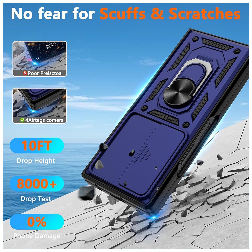 Puzdro Techsuit CamShield Series v modrej farbe sa vyznačuje robustným a moderným dizajnom, ktorý je navrhnutý tak, aby odolal nástrahám každodenného používania. Kľúčovým prvkom je integrovaný posuvný kryt fotoaparátu (CamShield), ktorý efektívne chráni objektívy pred poškriabaním a nečistotami, keď ich nepoužívate. Vďaka tomuto mechanizmu je vaše súkromie a kvalita fotografií vždy v bezpečí.