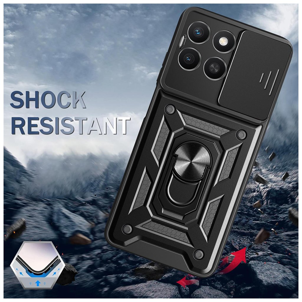 Puzdro Techsuit CamShield Series sa pýši unikátnym a multifunkčným dizajnom, ktorý kombinuje estetiku s praktickosťou. Jeho konštrukcia je tvorená viacvrstvovou ochranou, zahŕňajúcou tvrdý PC plast a mäkký TPU silikón, čo zaisťuje maximálnu odolnosť proti nárazom a pádom.