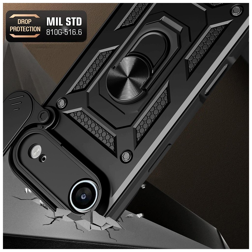 - Taktický vzhľad: Výrazné textúrované panely a zosilnené rohy efektívne absorbujú nárazy a chránia telefón pred poškodením pri pádoch.