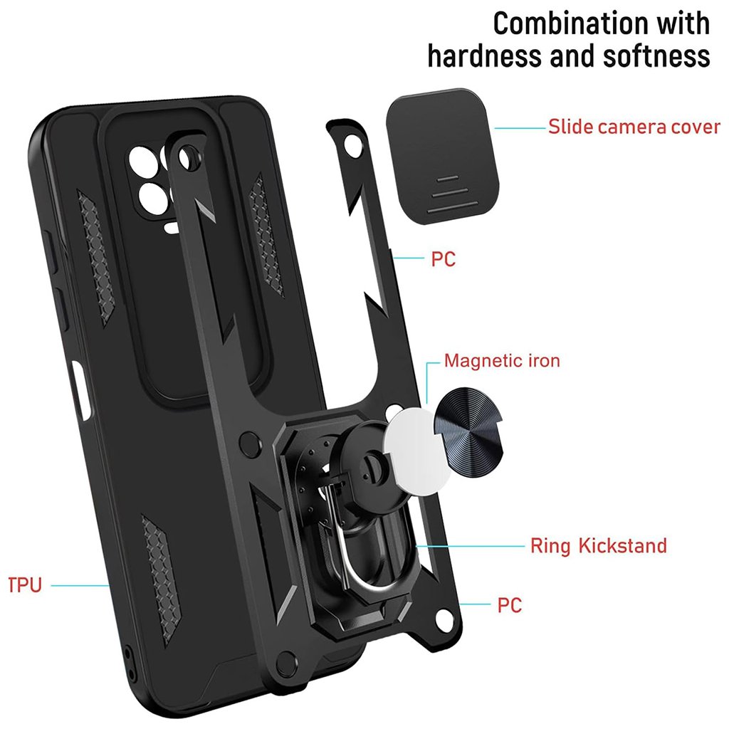 Puzdro Techsuit CamShield Series sa pýši premysleným dizajnom, ktorý kombinuje odolnosť s praktickými funkciami. Je vyrobené z kombinácie tvrdého polykarbonátu (PC) a pružného termoplastického polyuretánu (TPU), čo zaisťuje optimálnu ochranu proti pádom, nárazom a každodennému opotrebovaniu. Matný čierny povrch dodáva puzdru sofistikovaný vzhľad a zároveň je odolný proti poškriabaniu a odtlačkom prstov. Jednou z kľúčových vlastností je **integrovaný posuvný kryt fotoaparátu (CamShield)**, ktorý efektívne chráni šošovky vášho telefónu pred poškriabaním, kolíziami a prachom. Tento mechanizmus je ľahko ovládateľný a zaisťuje, že vaše fotografie budú vždy ostré a bezchybné. Puzdro ďalej disponuje zosilnenými rohmi a textúrovanými bokmi pre lepší úchop, čo minimalizuje riziko vykĺznutia telefónu z ruky. Na zadnej strane nájdete praktický **otočný krúžok (Ring Kickstand)**, ktorý slúži ako stojan pre pohodlné sledovanie videí alebo videohovory. Krúžok je navyše vybavený integrovaným magnetickým železom, čo umožňuje ľahké a bezpečné uchytenie telefónu k magnetickým držiakom v aute.Parametre Produktu: