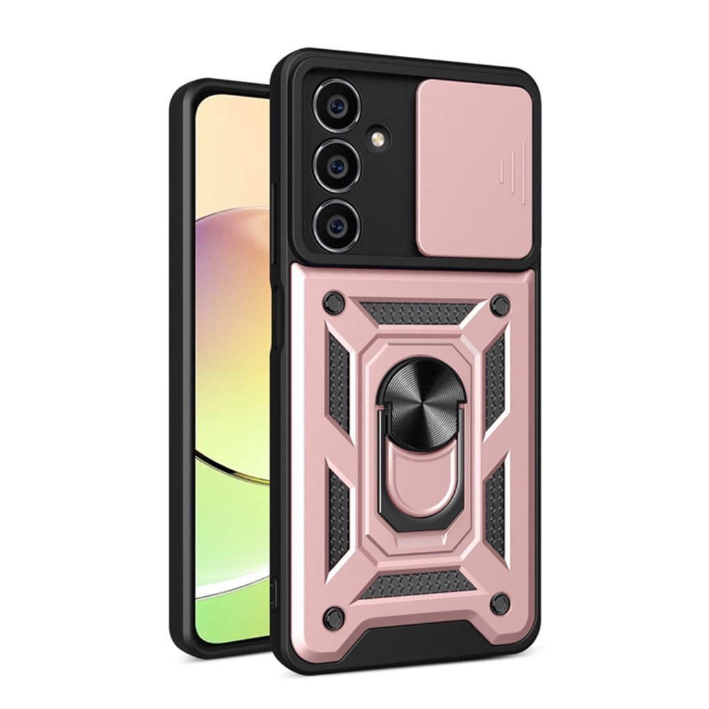Techsuit CamShield Series pre Samsung Galaxy M55 – Rose Gold Predstavujeme Techsuit CamShield Series, dokonalú kombináciu štýlu a robustnej ochrany pre váš Samsung Galaxy M55. Tento kryt v elegantnej farbe Rose Gold je navrhnutý tak, aby spĺňal tie najvyššie nároky na bezpečnosť vášho zariadenia a zároveň podčiarkol jeho jedinečný vzhľad. Dizajn a parametre Kryt Techsuit CamShield Series sa pýši dvojfarebným prevedením, ktoré kombinuje sofistikovanú ružovo zlatú s matnými čiernymi detailmi. Zadná strana je rozdelená na dve hlavné časti:- Horná časť s precíznymi výrezmi pre fotoaparáty je doplnená posuvným krytom CamShield vo farbe Rose Gold, ktorý efektívne chráni objektívy pred poškriabaním a nečistotami.