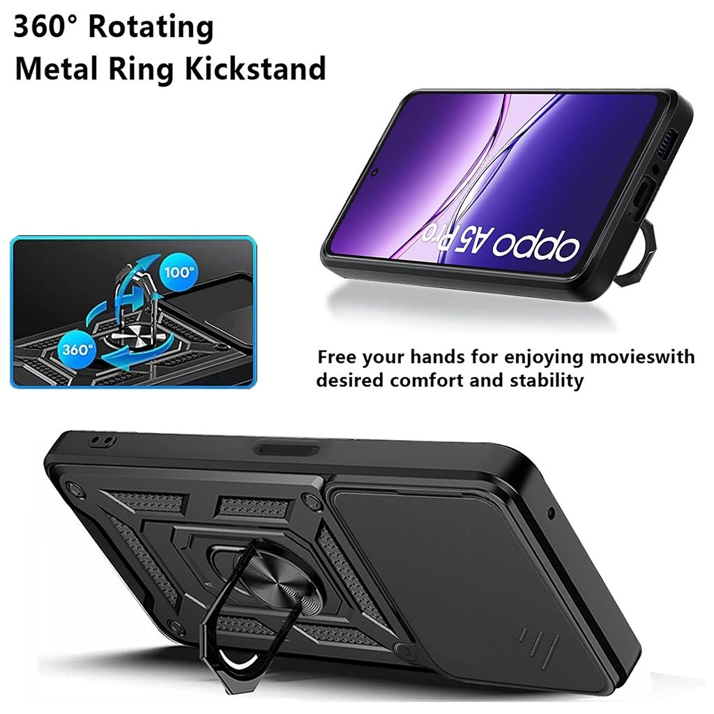 - Integrovaný otočný krúžok a stojan: Na zadnej strane puzdra nájdete 360° otočný kovový krúžok, ktorý slúži ako praktický stojan pre pohodlné sledovanie obsahu a zároveň ako bezpečný úchyt. Krúžok je navyše vybavený magnetickou kovovou doštičkou, kompatibilnou s magnetickými držiakmi do auta.