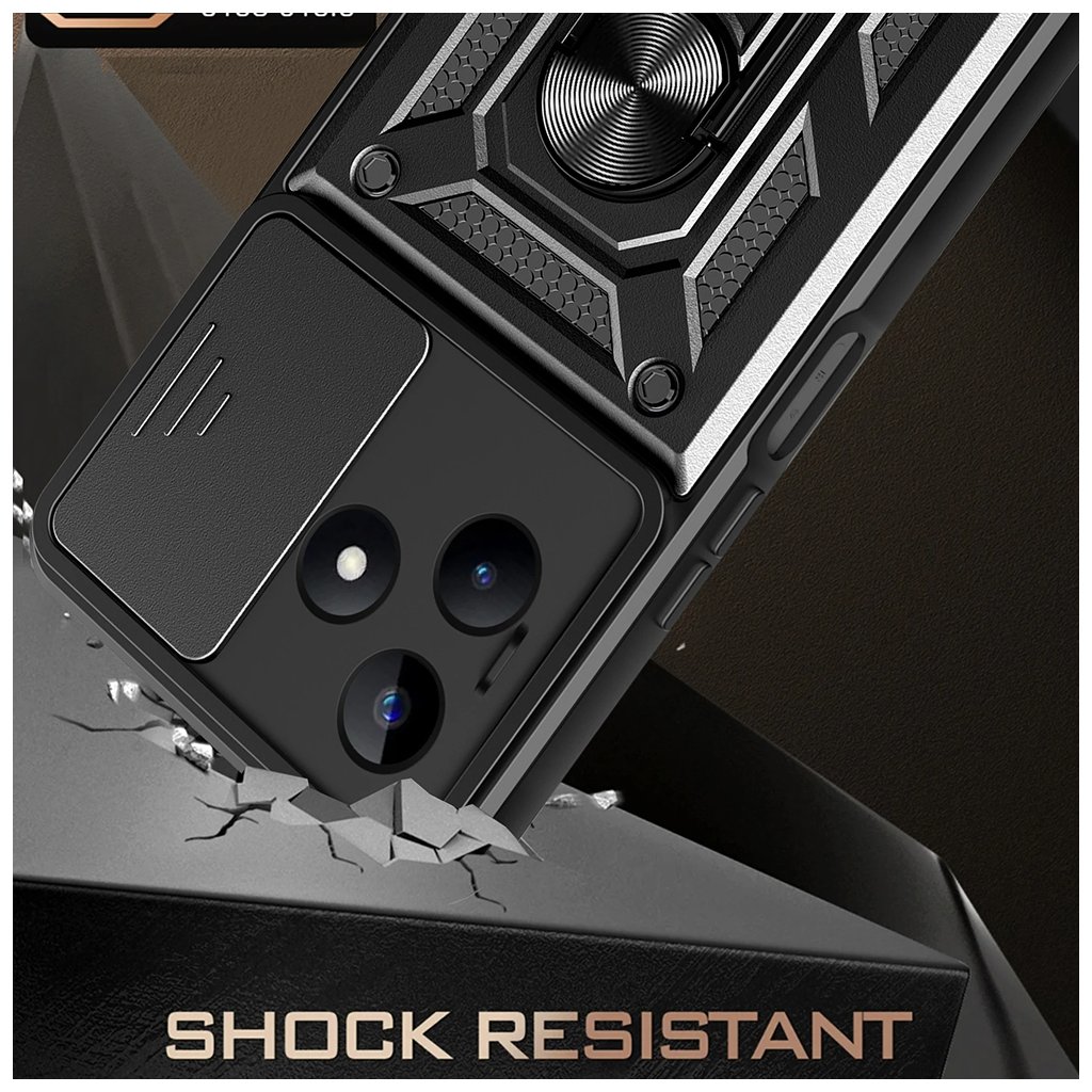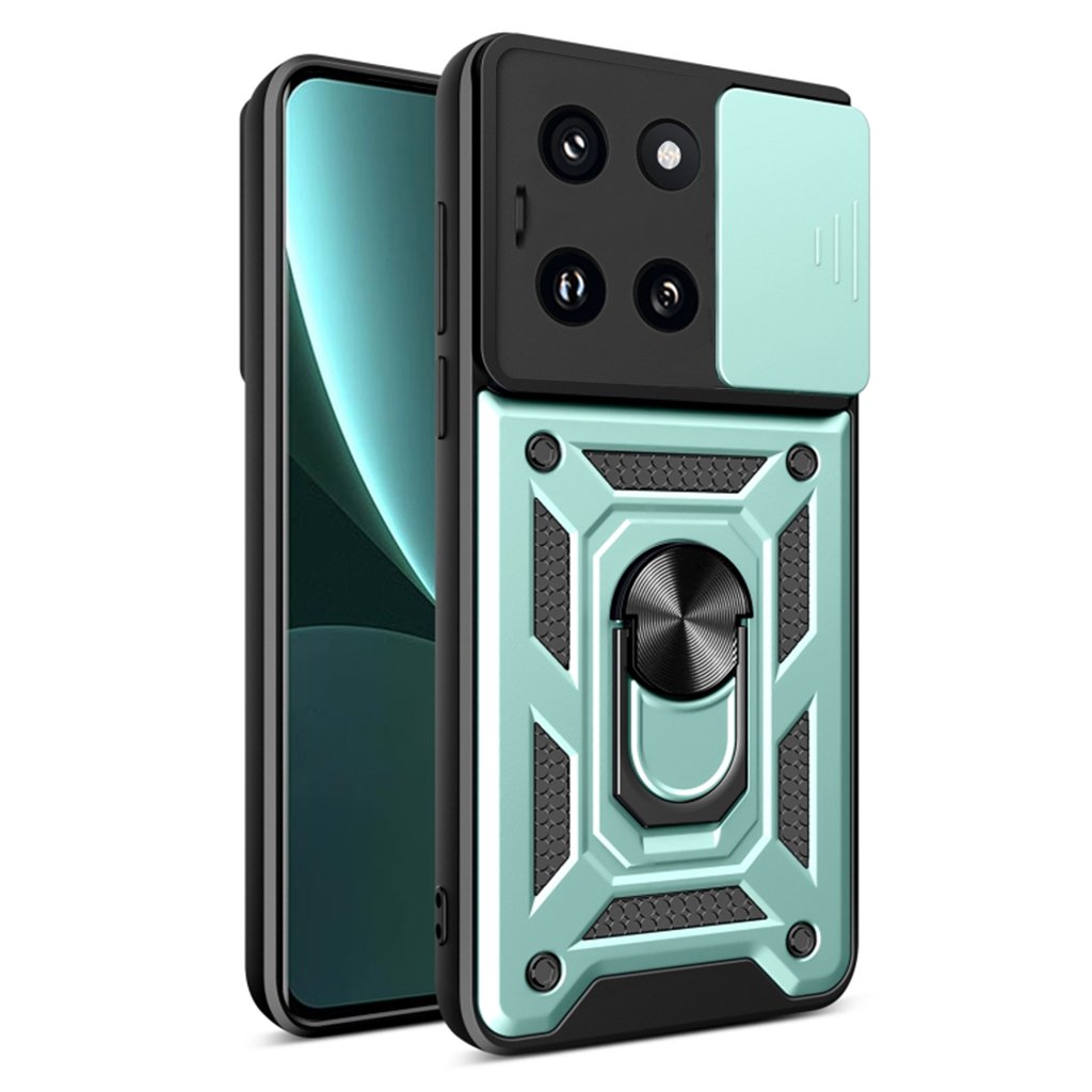 Toto robustné puzdro v elegantnej kombinácii zelenej a čiernej farby je navrhnuté s dôrazom na maximálnu ochranu a funkčnosť. Jeho dvojvrstvová konštrukcia poskytuje vynikajúcu odolnosť proti nárazom a pádom. Dominantou dizajnu je integrovaný posuvný kryt fotoaparátu CamShield, ktorý chráni citlivé objektívy pred poškriabaním a nechceným poškodením, a zároveň zaisťuje vaše súkromie. Na zadnej strane nájdete praktický kovový krúžok, ktorý slúži ako bezpečný držiak pre stabilnejší úchop telefónu a zároveň ako integrovaný stojan pre pohodlné sledovanie obsahu. Textúrovaný povrch a zosilnené rohy dodávajú puzdru moderný, taktický vzhľad a zvyšujú jeho odolnosť.