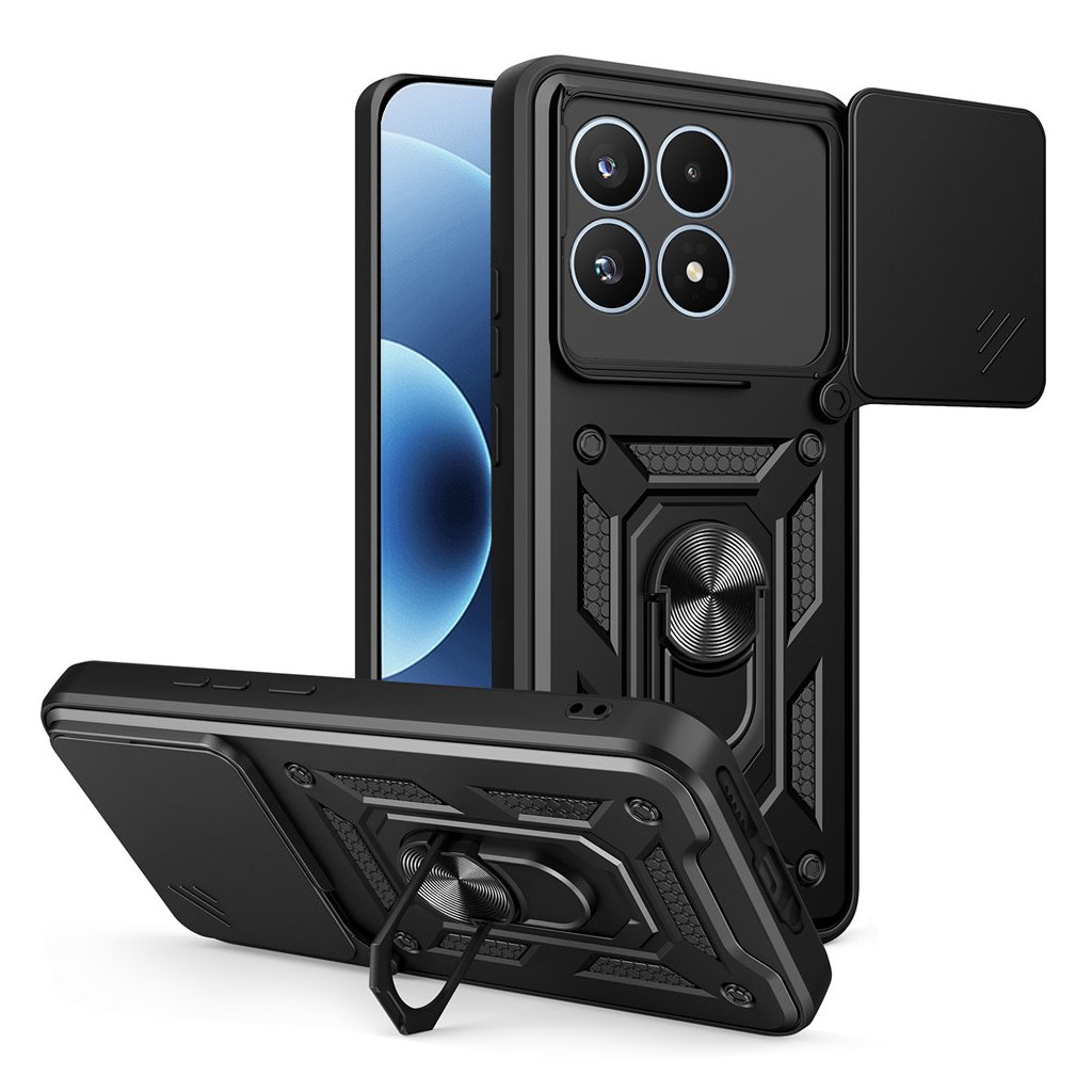 Puzdro Techsuit CamShield Series sa pýši robustným a moderným dizajnom, ktorý nielen skvele vyzerá, ale predovšetkým chráni. Jeho čierna farba a geometrické textúry na zadnej strane dodávajú telefónu dynamický a odolný vzhľad. Kľúčovou vlastnosťou je integrovaný posuvný kryt fotoaparátu, ktorý efektívne chráni šošovky pred poškriabaním a nečistotami, a zároveň zaisťuje vaše súkromie.
