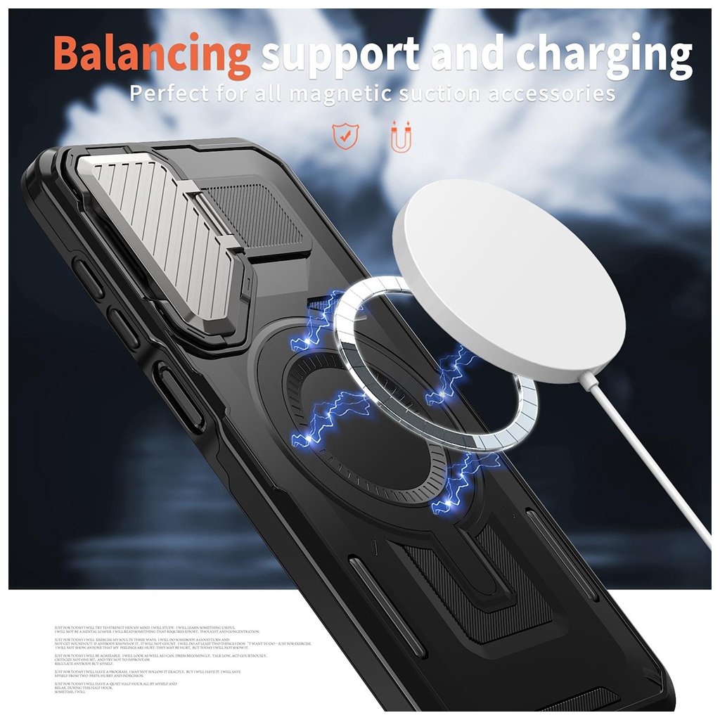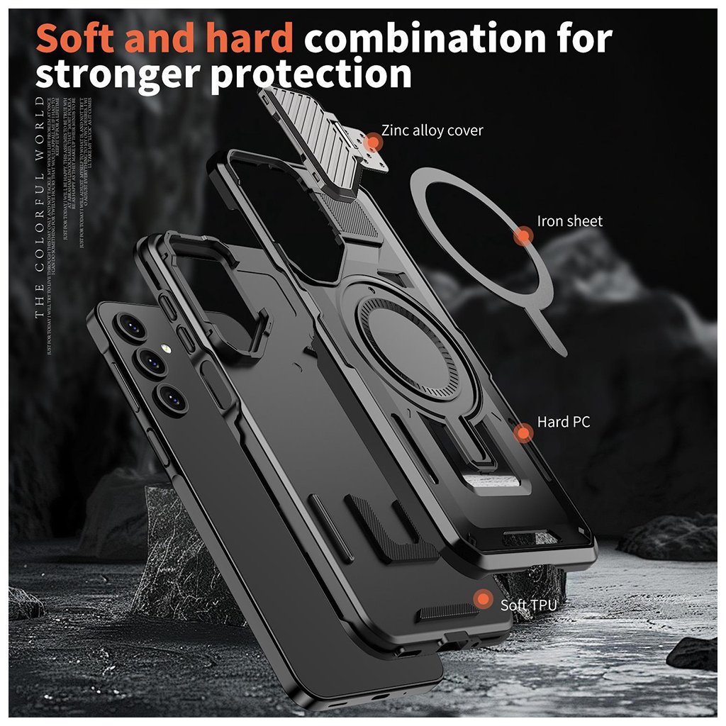 Techsuit CamVault MagSafe pre Samsung Galaxy A25 5G čierny Predstavujeme Techsuit CamVault MagSafe, inovatívne ochranné puzdro navrhnuté pre váš Samsung Galaxy A25 5G, ktoré kombinuje prvotriednu ochranu s maximálnou funkčnosťou. Tento čierny kryt je stelesnením inteligentného riešenia pre každého, kto hľadá spoľahlivosť a štýl za rozumnú cenu. Dizajn a parametre, ktoré zaujmú- Puzdro Techsuit CamVault MagSafe sa pýši robustným a moderným dizajnom v elegantnej čiernej farbe.