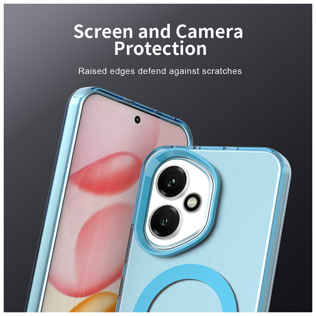 Dizajn CandyCase sa vyznačuje priesvitným modrým prevedením, ktoré nechá vyniknúť originálnej kráse vášho Honor 400, zatiaľ čo mu dodá svieži farebný akcent. Na zadnej strane krytu je elegantne integrovaný výrazný kruhový MagSafe prstenec vo svetlejšom odtieni modrej, ktorý zaisťuje perfektnú kompatibilitu s MagSafe príslušenstvom. Vďaka tomu môžete jednoducho a bezpečne pripevniť bezdrôtové nabíjačky, peňaženky alebo držiaky, a to s maximálnou stabilitou a efektivitou.