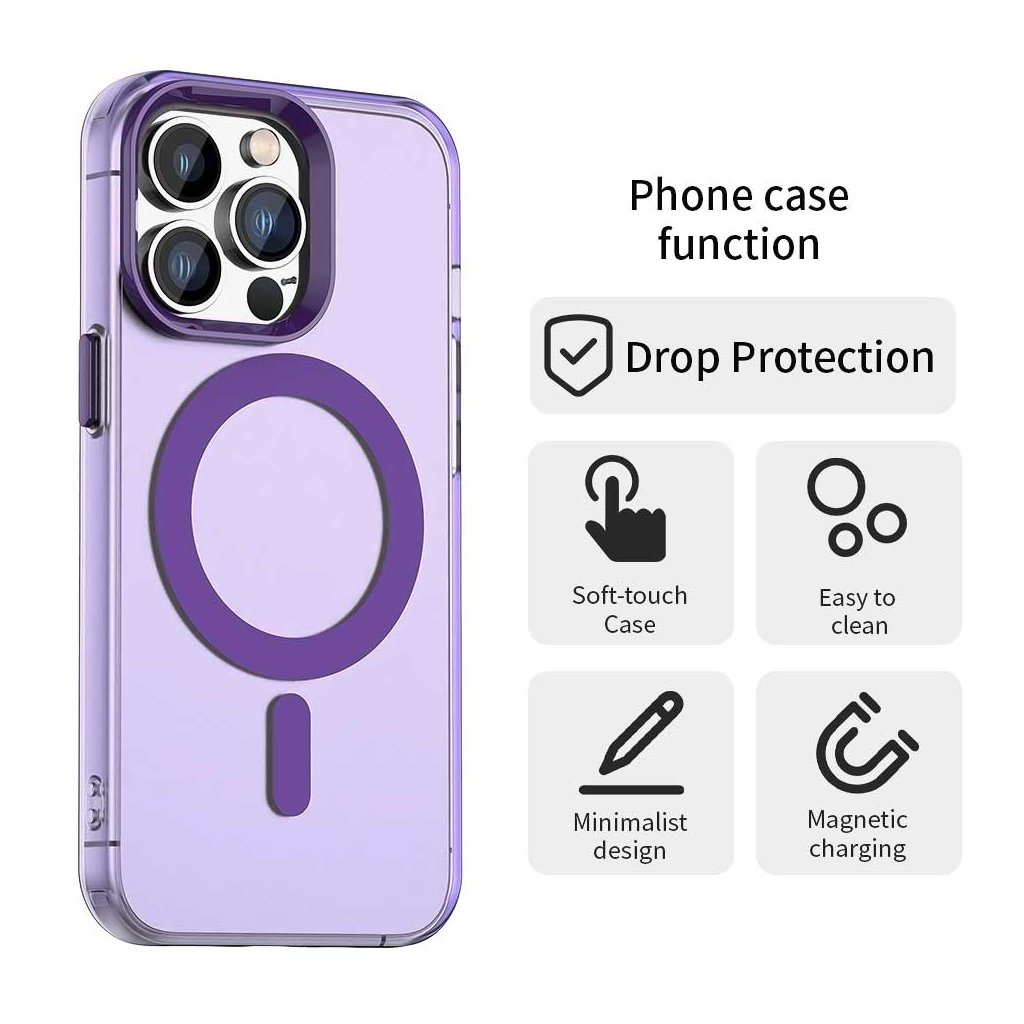 Kryt Techsuit CandyCase sa pýši priehľadným fialovým prevedením, ktoré nechá vyniknúť originálnej farbe vášho iPhonu a zároveň mu dodá moderný nádych. Na zadnej strane je výrazne integrovaný MagSafe krúžok a zarovnávací pruh v sýtejšej fialovej farbe, čo zaisťuje bezproblémovú kompatibilitu s MagSafe príslušenstvom a rýchle bezdrôtové nabíjanie. Okraje krytu sú rovnako transparentne fialové a poskytujú zvýšenú ochranu proti nárazom.