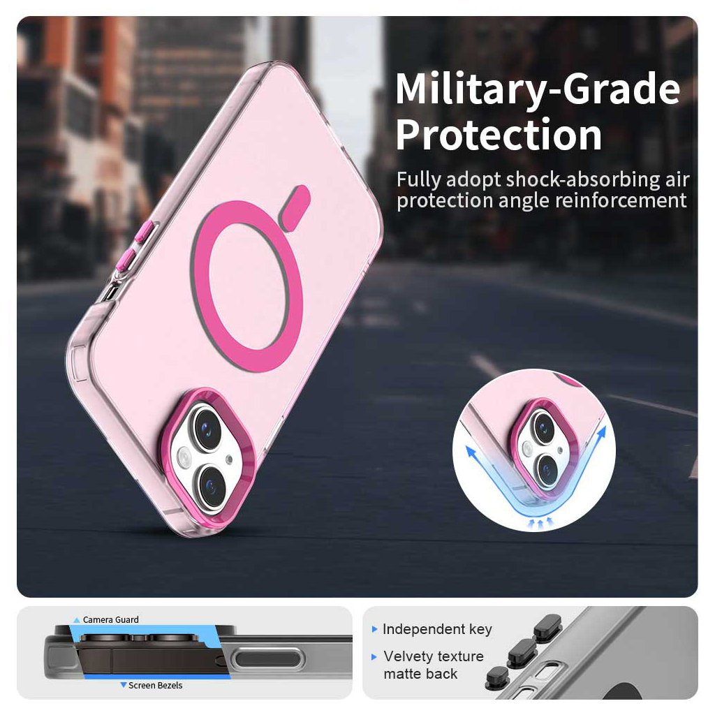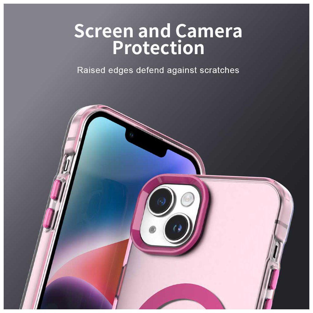 Puzdro Techsuit CandyCase MagSafe sa pýši priehľadným prevedením s jemným ružovým nádychom, ktoré nechá vyniknúť originálnu krásu vášho iPhone 15. Jeho dizajn je podčiarknutý výraznými ružovými akcentmi – MagSafe krúžkom, ktorý zaisťuje bezproblémovú kompatibilitu s MagSafe príslušenstvom, a tiež ružovými tlačidlami a zvýšeným rámčekom okolo fotoaparátu. Tento rámček nielenže dodáva puzdru šmrnc, ale zároveň poskytuje zvýšenú ochranu objektívov pred poškriabaním a nárazmi. Vďaka precíznemu spracovaniu a tenkému profilu puzdro dokonale padne do ruky a nenarušuje elegantné línie telefónu.