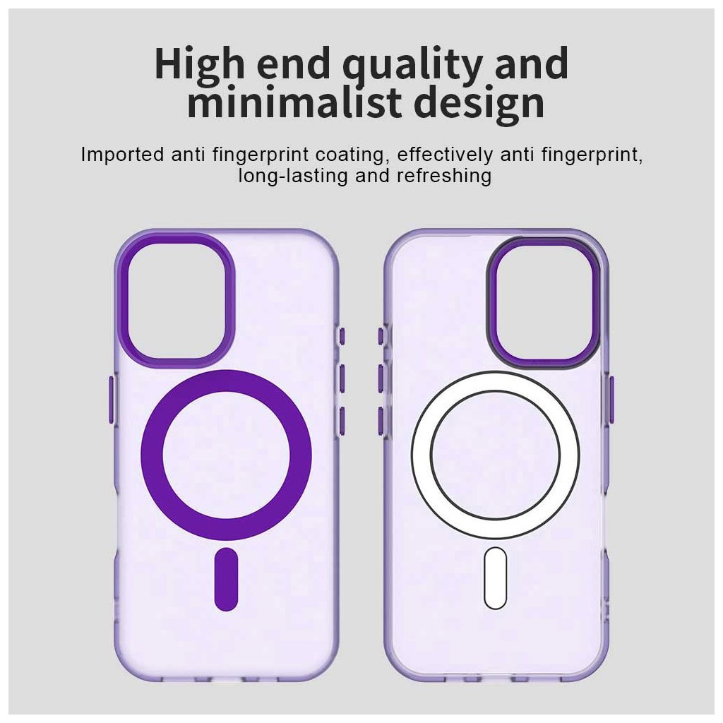 CandyCase MagSafe sa pýši priesvitným fialovým prevedením, ktoré necháva vyniknúť originálnej farbe vášho telefónu a zároveň mu dodáva moderný nádych. Výrazný fialový MagSafe krúžok na zadnej strane zaisťuje bezpečné a stabilné pripojenie všetkého MagSafe príslušenstva, od bezdrôtových nabíjačiek po peňaženky. Rovnako je fialovým akcentom zvýraznený aj modul fotoaparátu a bočné tlačidlá, čo vytvára harmonický a premyslený vzhľad.