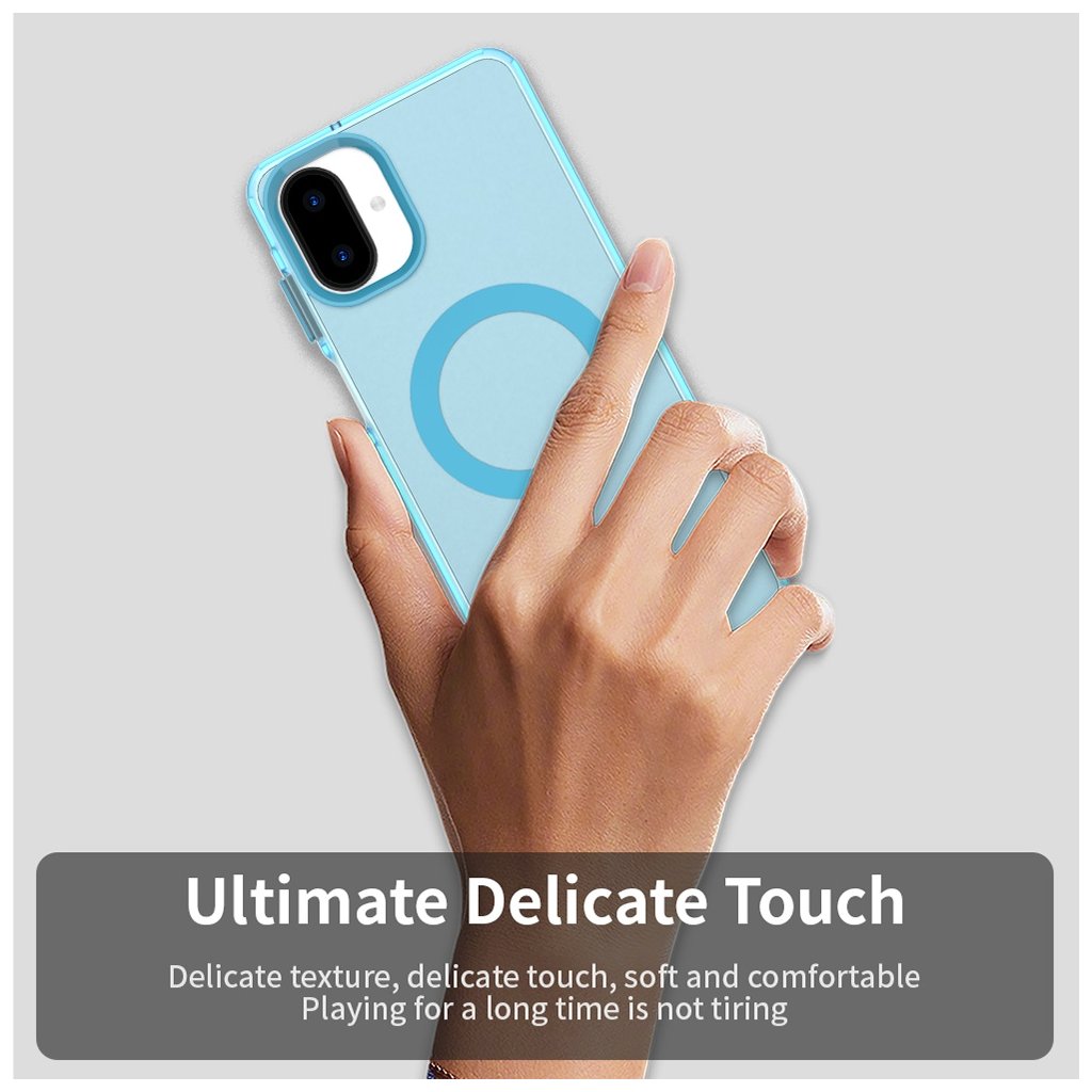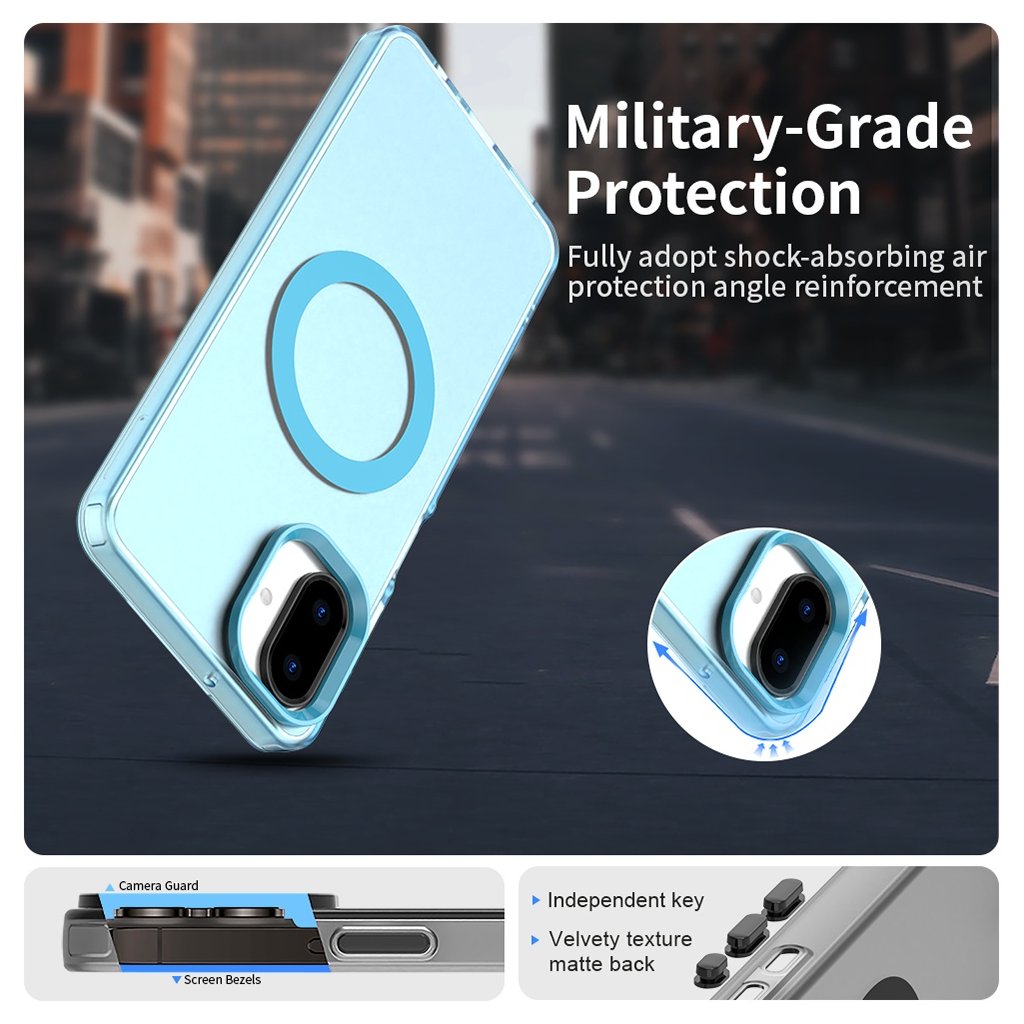- MagSafe krúžok: Integrovaný výrazný modrý krúžok zabezpečuje pevné a spoľahlivé uchytenie MagSafe príslušenstva, ako sú bezdrôtové nabíjačky alebo peňaženky.