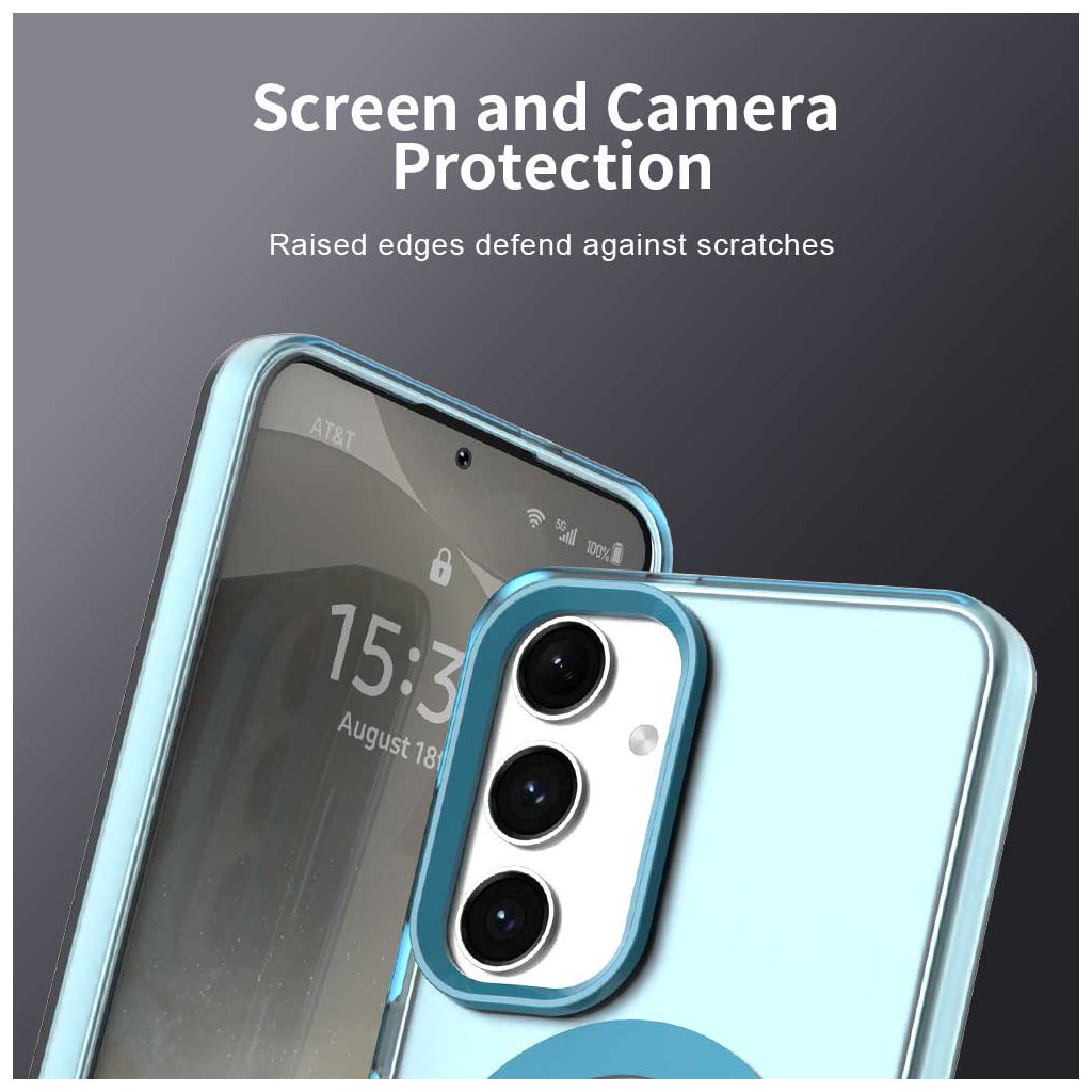 - MagSafe kompatibilita: Na zadnej strane je integrovaný výrazný svetlomodrý MagSafe krúžok, ktorý zabezpečuje bezproblémovú kompatibilitu s MagSafe príslušenstvom a zároveň slúži ako štýlový dizajnový prvok.