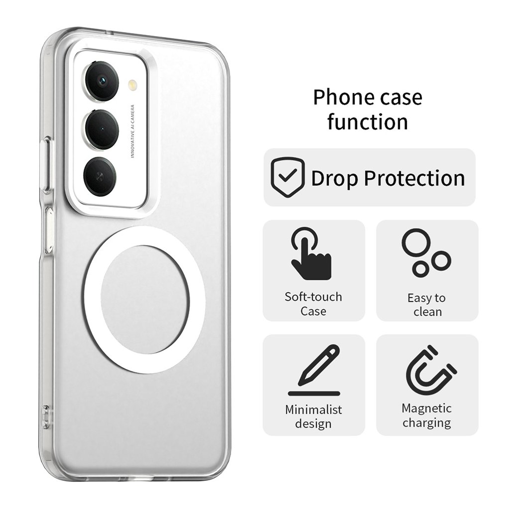 * **Názov produktu:** Techsuit CandyCase MagSafe * **Kompatibilita:** Xiaomi Redmi 15 4G / Xiaomi Redmi 15 5G * **Farba:** Biela (MagSafe krúžok), priehľadné puzdro * **Materiál:** Mäkký na dotyk, odolný proti opotrebovaniu * **Funkcie:** * Integrovaný MagSafe krúžok pre bezdrôtové nabíjanie a príslušenstvo * Zvýšené okraje okolo displeja a fotoaparátu * Zosilnené rohy s technológiou vzduchových vankúšov (vojenská ochrana proti pádu) * Presné výrezy pre všetky porty a funkcie * Nezávislé tlačidlá s istým stiskom * Ľahko čistiteľný povrchZnačka Techsuit: Kvalita za rozumnú cenu