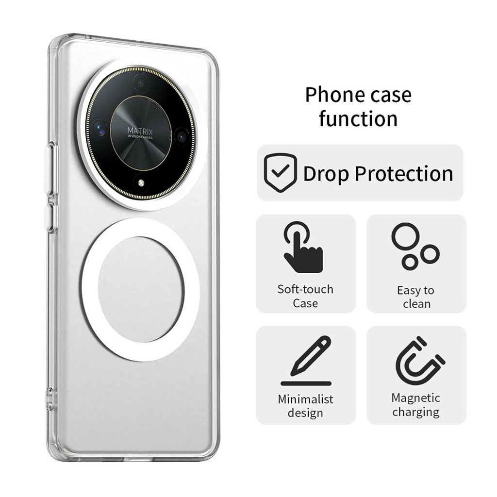 Puzdro Techsuit CandyCase MagSafe sa vyznačuje prvotriednou ochranou a precíznym spracovaním. Jeho dizajn je transparentný, čo umožňuje vyniknúť originálnemu vzhľadu vášho telefónu Honor Magic6 Lite, zatiaľ čo biely MagSafe krúžok na zadnej strane dodáva puzdru moderný a funkčný prvok. Puzdro je tenké a dokonale kopíruje krivky telefónu, s presnými výrezmi pre fotoaparáty, konektory, mikrofóny a reproduktory, čo zaisťuje neobmedzenú funkčnosť zariadenia. Tlačidlá sú chránené, ale zároveň si zachovávajú istý stisk, a prístup k nabíjaciemu portu je vždy bezproblémový. Zvýšené okraje okolo displeja a fotoaparátu poskytujú dodatočnú ochranu proti poškriabaniu a nárazom.