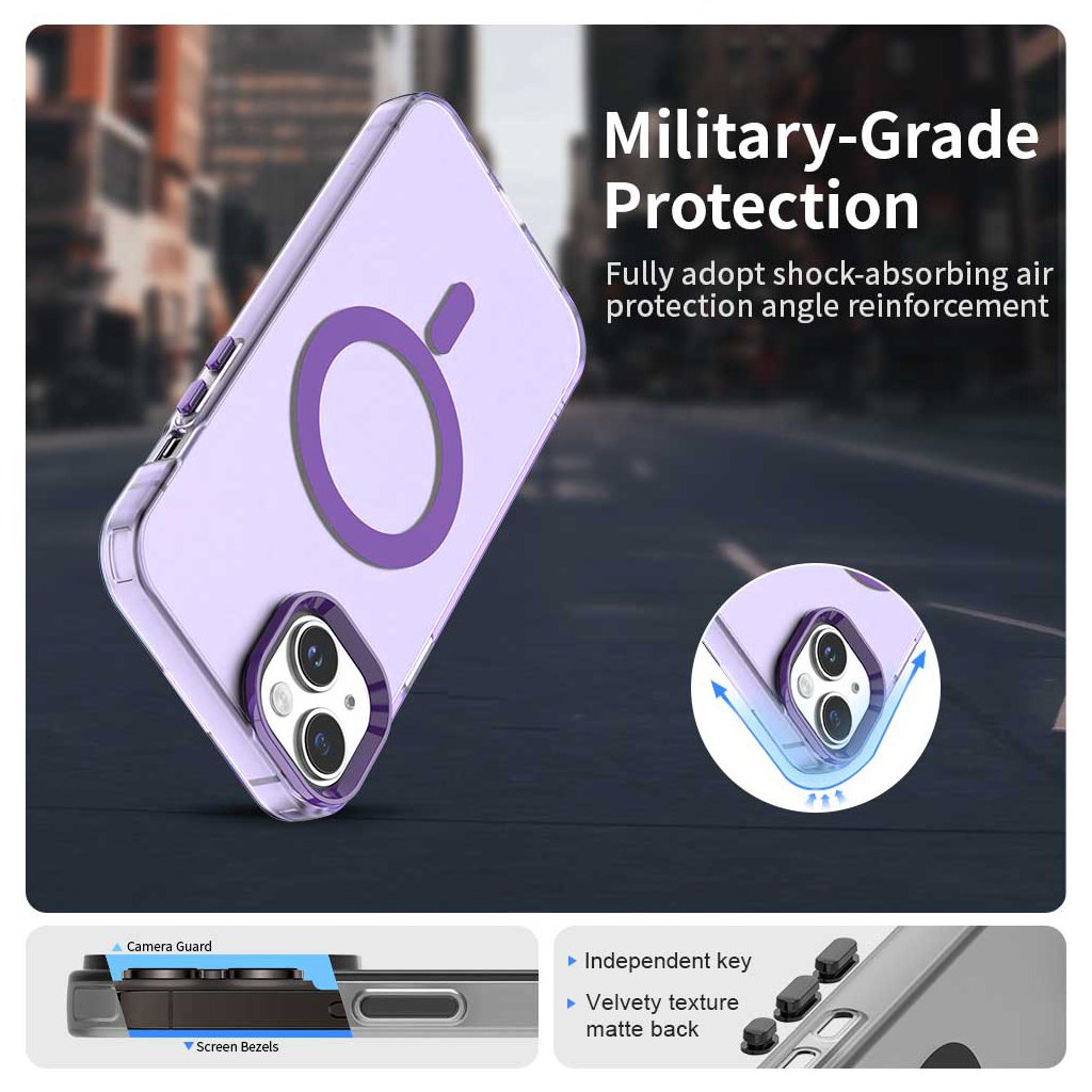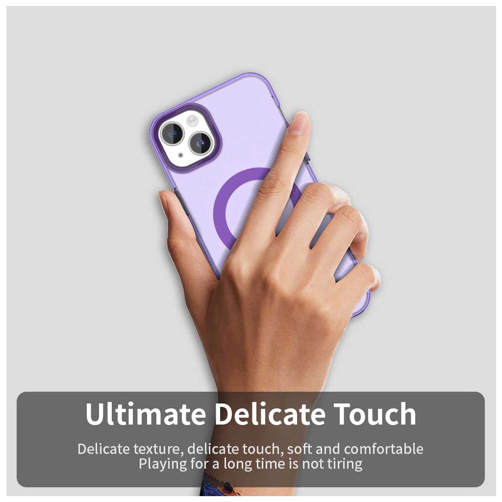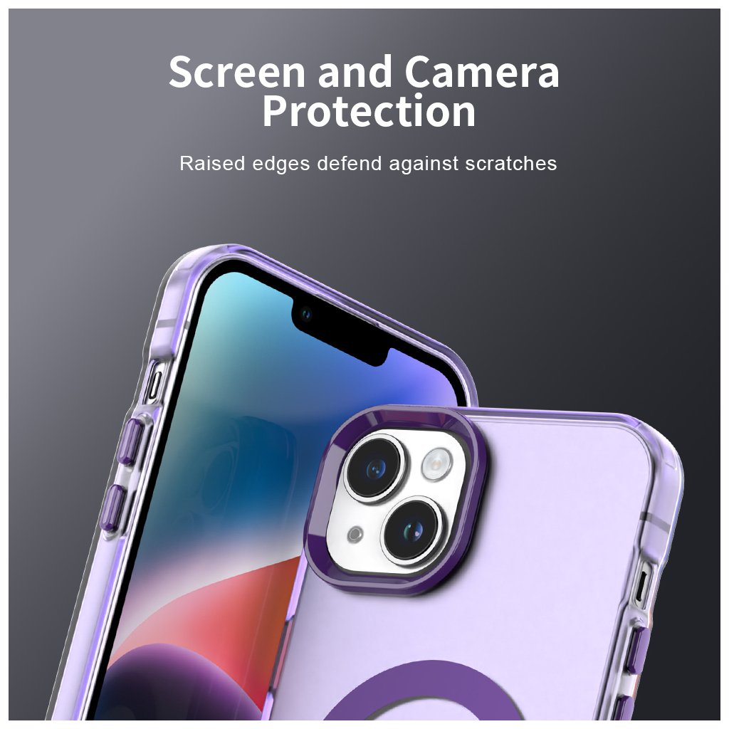 Kryt Techsuit CandyCase MagSafe sa pýši priesvitným fialovým prevedením, ktoré necháva vyniknúť originálny dizajn vášho iPhone 13 a zároveň mu dodáva moderný nádych. Na zadnej strane je integrovaný výrazný fialový MagSafe krúžok s vertikálnou linkou, ktorý zaisťuje perfektnú kompatibilitu s MagSafe príslušenstvom a bezdrôtovým nabíjaním. Okraje krytu sú navrhnuté s mierne tmavším fialovým odtieňom, čo vytvára elegantný rám a zároveň zvyšuje odolnosť proti nárazom. Presné výrezy pre konektory, mikrofóny, reproduktory a fotoaparáty zaručujú plnú funkčnosť bez akéhokoľvek obmedzenia. Tlačidlá sú chránené, ale zároveň si zachovávajú istý a príjemný stisk.