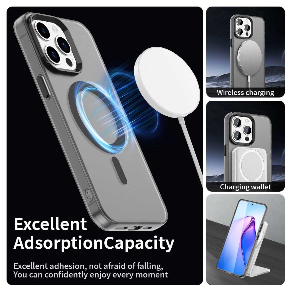 Integrovaný MagSafe krúžok na zadnej strane zaisťuje perfektnú kompatibilitu s bezdrôtovým nabíjaním a MagSafe príslušenstvom, ako sú peňaženky, s vynikajúcou adsorpčnou kapacitou, ktorá zabraňuje nechcenému pádu.