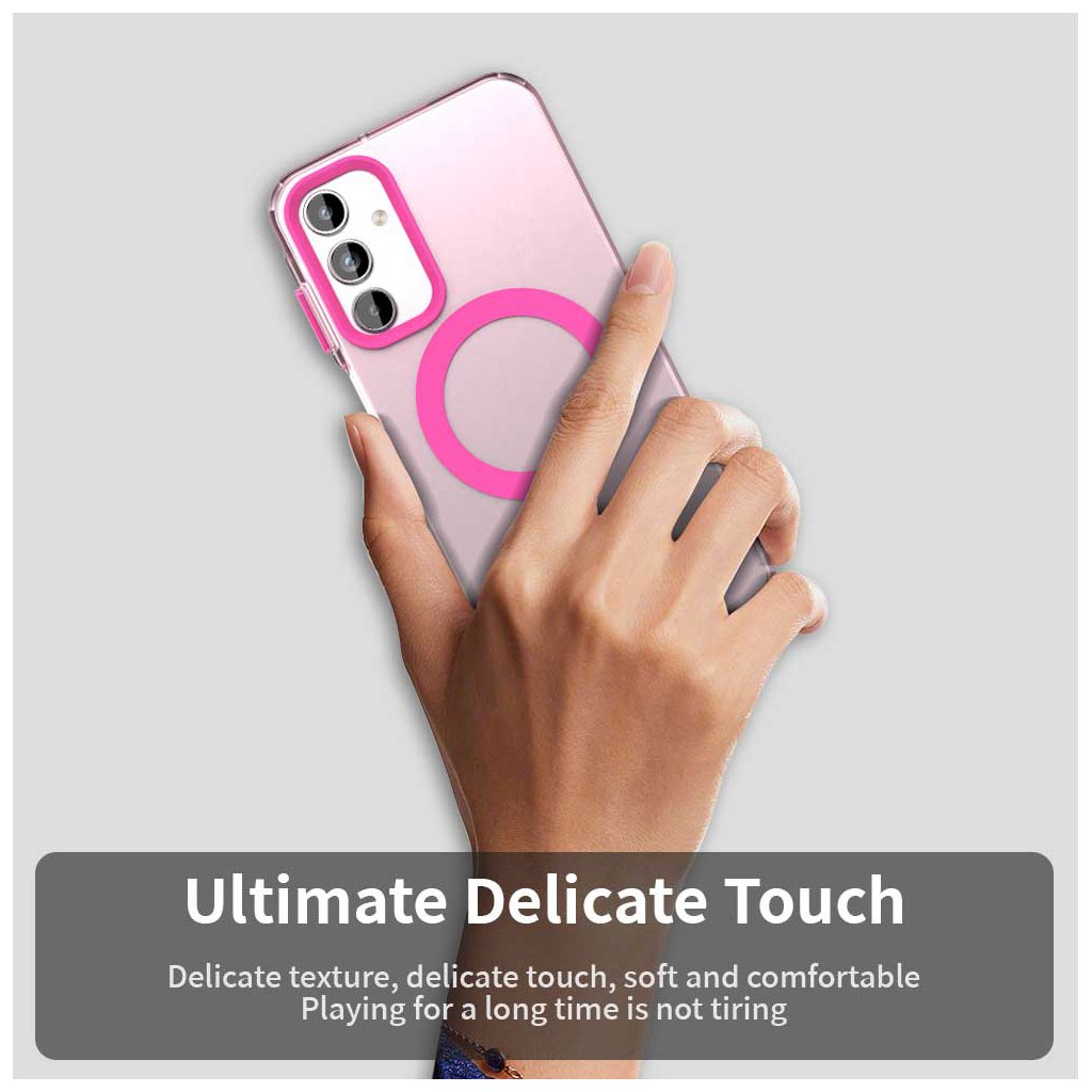 - Na zadnej strane je integrovaný výrazný ružový MagSafe krúžok pre perfektnú kompatibilitu s MagSafe príslušenstvom a bezdrôtovým nabíjaním.