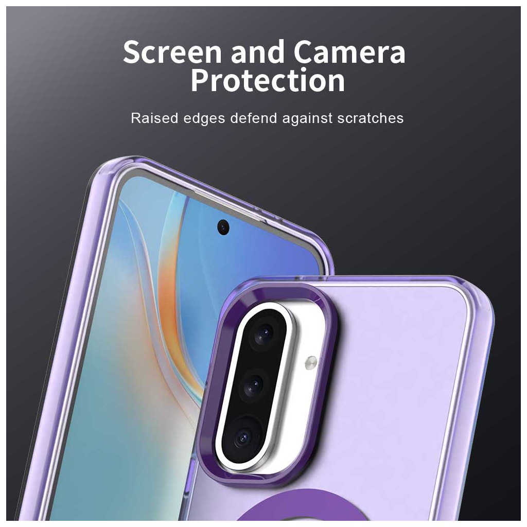 Objavte dokonalú kombináciu štýlu, ochrany a funkčnosti s puzdrom Techsuit CandyCase MagSafe, navrhnutým exkluzívne pre váš Samsung Galaxy A36 5G. Toto elegantné fialové puzdro predstavuje inteligentné riešenie pre každého, kto vyžaduje prvotriednu ochranu za rozumnú cenu, bez toho, aby musel obetovať moderný dizajn a praktické vlastnosti. Dizajn a parametre Puzdro Techsuit CandyCase MagSafe sa pýši minimalistickým a sofistikovaným dizajnom. Jeho priesvitná fialová farba necháva vyniknúť originálnu krásu vášho telefónu, zatiaľ čo mu dodáva jemný farebný akcent.- Kľúčovým prvkom je integrovaný MagSafe krúžok v identickom fialovom odtieni, ktorý zaisťuje perfektné magnetické priľnutie pre bezdrôtové nabíjanie a kompatibilné príslušenstvo, ako sú nabíjacie peňaženky.