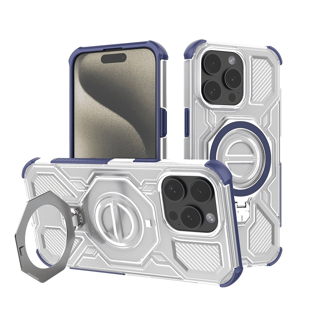 - Integrovaný kruhový prvok na zadnej strane slúži ako praktický stojan alebo držiak, ktorý zároveň môže podporovať magnetické príslušenstvo.