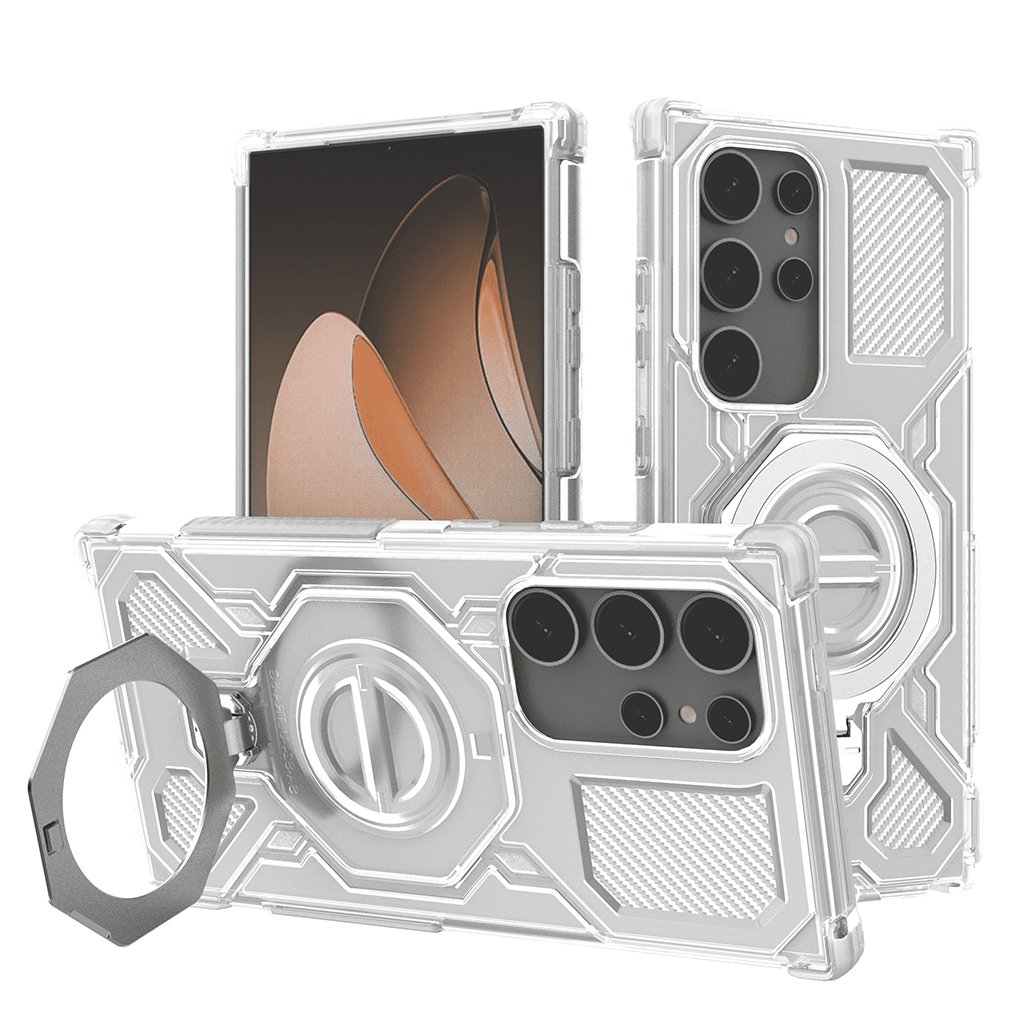 - Integrovaným otočným prstencom, ktorý slúži ako praktický stojanček pre pohodlné sledovanie obsahu alebo ako bezpečné držadlo pre pevnejší úchop telefónu.