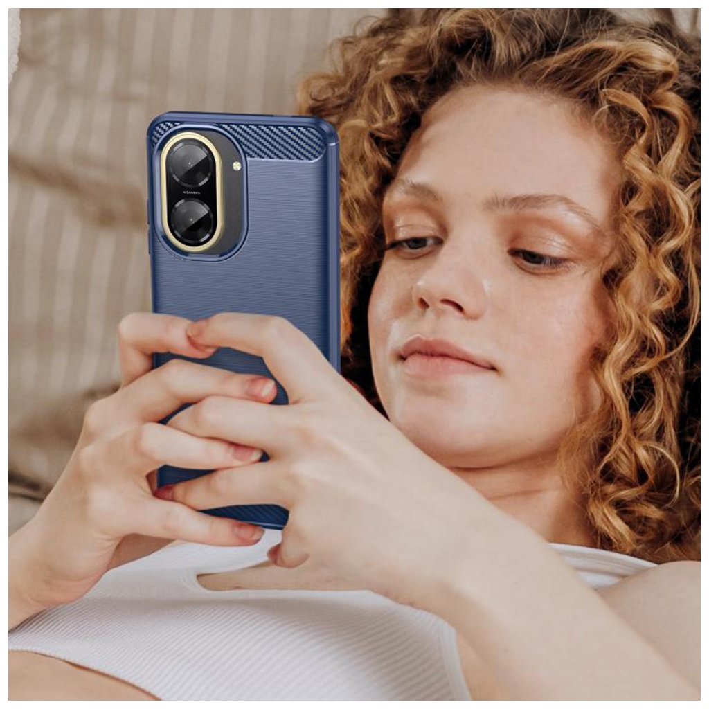 Puzdro sa pýši sofistikovaným dizajnom v sýto modrom odtieni. Zadná strana je opatrená elegantnou textúrou imitujúcou brúsený kov, ktorá dodáva puzdru moderný a prémiový vzhľad. Horná a spodná časť zadnej strany, rovnako ako okolie precízneho výrezu pre fotoaparát, zdobí dynamický vzor karbónových vlákien. Táto kombinácia textúr nielenže vyzerá skvele, ale taktiež zlepšuje úchop telefónu a minimalizuje riziko vykĺznutia. Vyrobené z kvalitného silikónu, puzdro je príjemné na dotyk a zároveň dostatočne robustné, aby absorbovalo nárazy a chránilo pred poškriabaním.