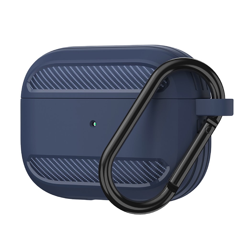Puzdro sa pýši moderným dizajnom, ktorý kombinuje hladký silikón s textúrou karbónových vlákien na hornej a spodnej časti. Táto kombinácia dodáva puzdru sofistikovaný vzhľad a zároveň zlepšuje úchop, čím minimalizuje riziko vykĺznutia z ruky. Námornícka modrá farba je nadčasová a ľahko sa kombinuje s akýmkoľvek štýlom. Puzdro je precízne vyrobené s ohľadom na detaily, čo zaručuje presné výrezy pre nabíjací port a viditeľnú LED diódu, takže vždy viete o stave nabíjania. Súčasťou balenia je aj praktická čierna karabína, vďaka ktorej môžete slúchadlá bezpečne pripnúť k batohu, kľúčom alebo pútku na nohaviciach a mať ich tak vždy po ruke.