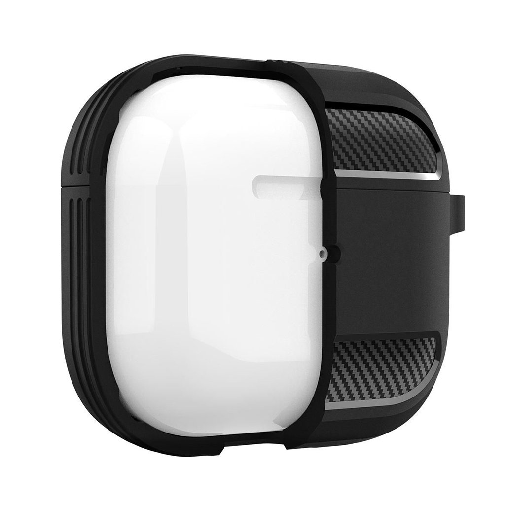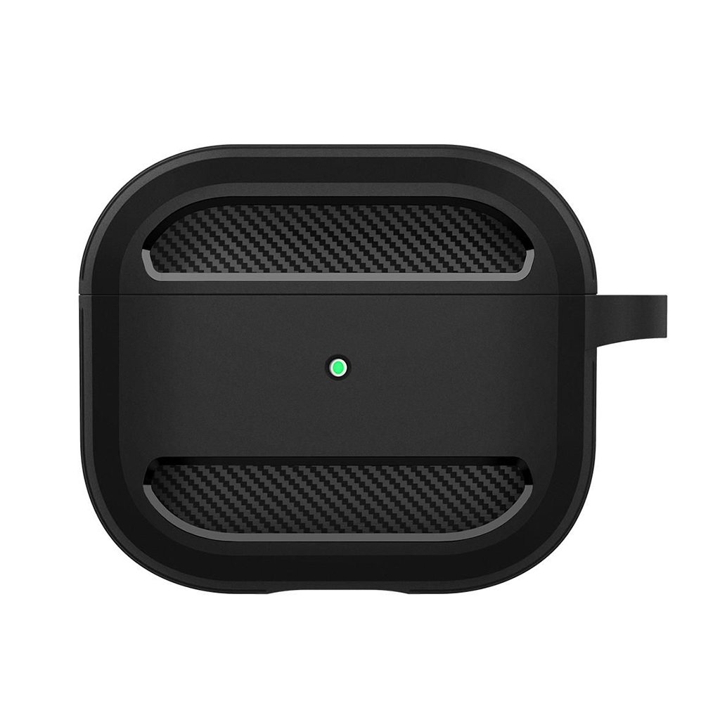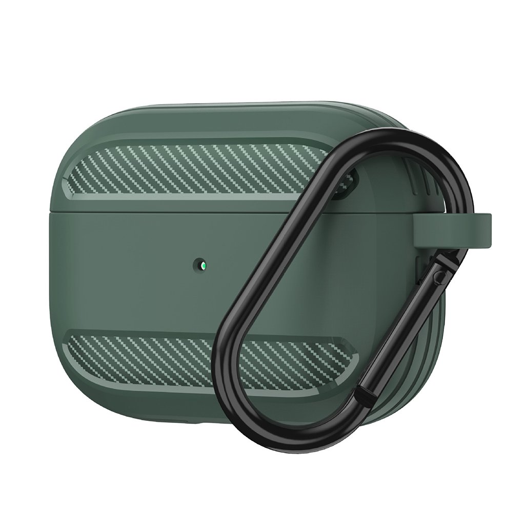 Puzdro Techsuit Carbon Silicone sa pýši robustným a zároveň flexibilným dizajnom. Jeho povrch je tvorený kombináciou hladkého silikónu a výraznej textúry imitujúcej karbónové vlákna, ktorá je umiestnená na hornej a spodnej časti prednej strany, rovnako ako po bokoch puzdra. Táto textúra dodáva puzdru dynamický a športový vzhľad. Sýto zelená farba podčiarkuje jeho modernú estetiku a zaisťuje, že vaše AirPods 3 budú vždy vyzerať štýlovo. Súčasťou balenia je aj praktická čierna karabína, vďaka ktorej môžete puzdro ľahko pripevniť k batohu, kľúčom alebo opasku a mať tak slúchadlá vždy po ruke a v bezpečí.