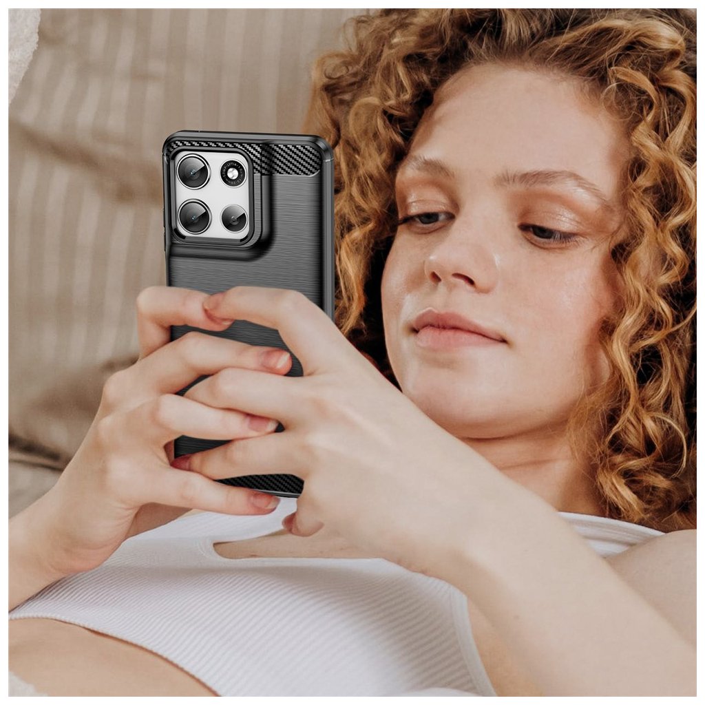 Techsuit Carbon Silicone pre Motorola Moto G56 čierny Predstavujeme ochranné puzdro Techsuit Carbon Silicone v elegantnej čiernej farbe, navrhnuté špeciálne pre váš Motorola Moto G56. Toto puzdro je ideálnou voľbou pre každého, kto hľadá spoľahlivú ochranu, ktorá zároveň podčiarkne moderný vzhľad telefónu. Dizajn a materiály Puzdro sa pýši sofistikovaným dizajnom, ktorý kombinuje praktickosť s estetikou.- Zadná strana je opatrená jemnou textúrou imitujúcou brúsený kov, čo dodáva puzdru prémiový vzhľad a zároveň zlepšuje úchop.