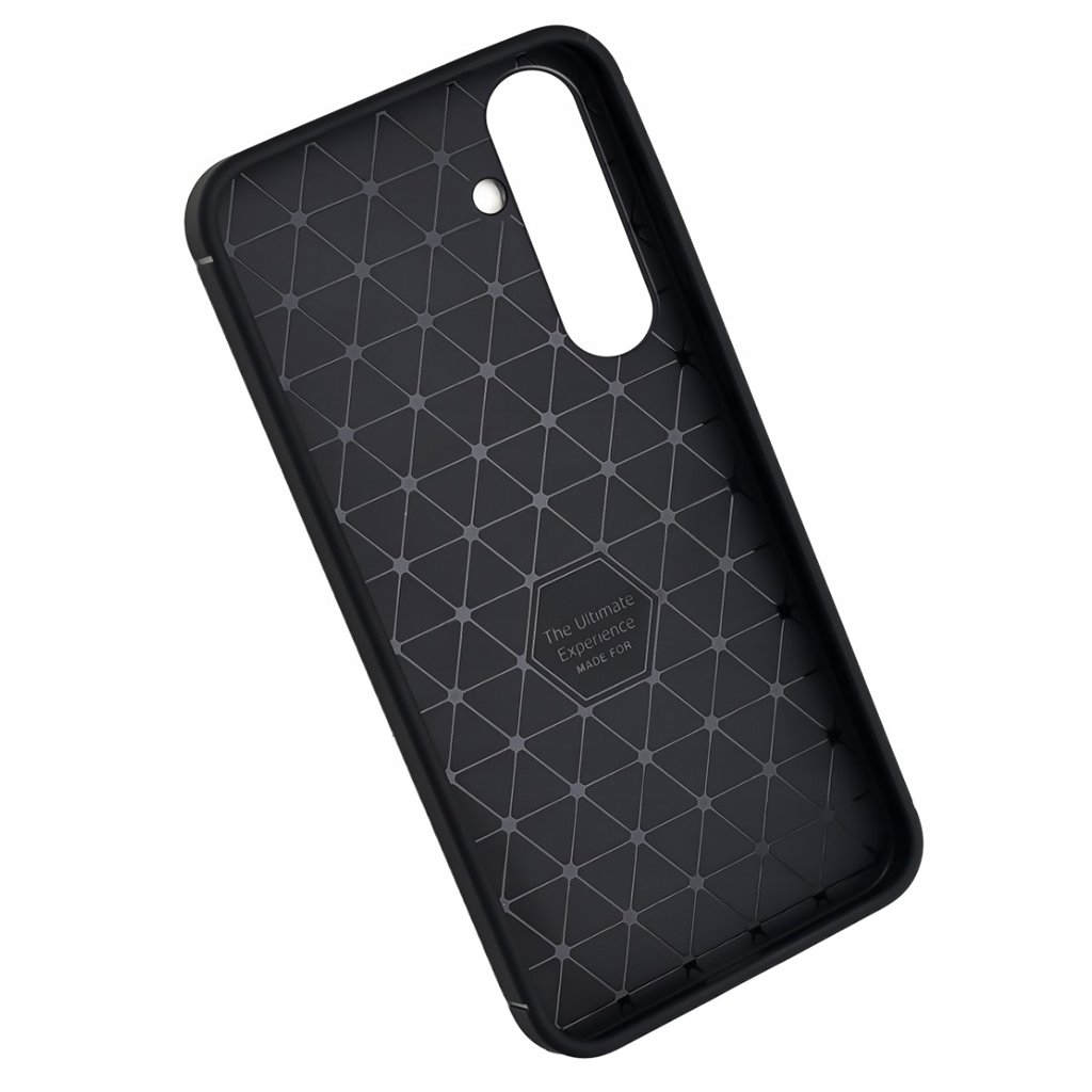 Puzdro Techsuit CarbonFiber sa pýši minimalistickým, avšak dynamickým dizajnom. Zadná strana je zdobená textúrou imitujúcou karbónové vlákna, ktorá dodáva puzdru športový a luxusný vzhľad. Táto textúra nielenže skvele vyzerá, ale taktiež zlepšuje úchop telefónu a minimalizuje riziko vykĺznutia z ruky. Horná časť zadnej strany je vyhradená pre modul fotoaparátu, kde je hladký, matný povrch s nápisom "AUTO FOCUS Ultimate Experience", čo podčiarkuje precízne spracovanie a zameranie na detail.