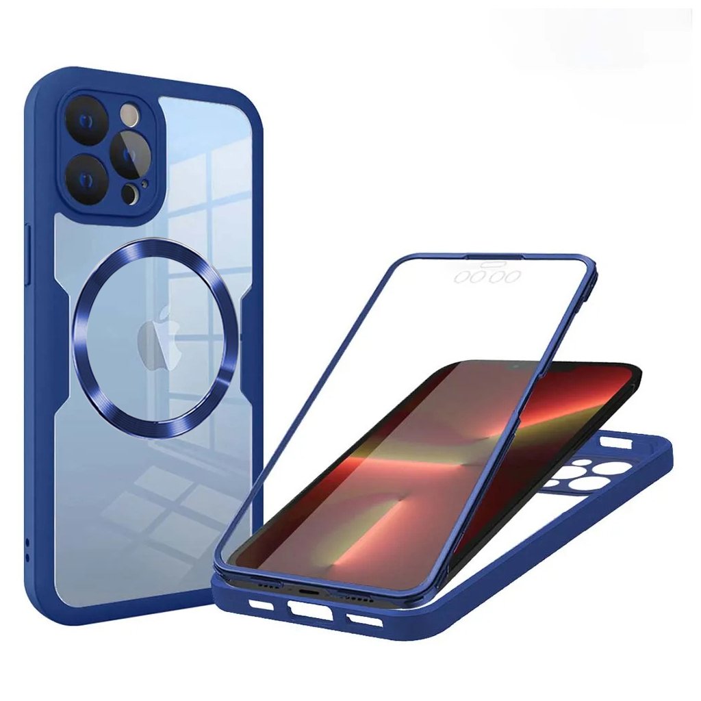 Predstavujeme Techsuit ColorVerse 360 MagSafe Series ochranné sklo v elegantnej modrej farbe, ktoré poskytuje komplexnú ochranu a štýlový vzhľad pre váš telefón.