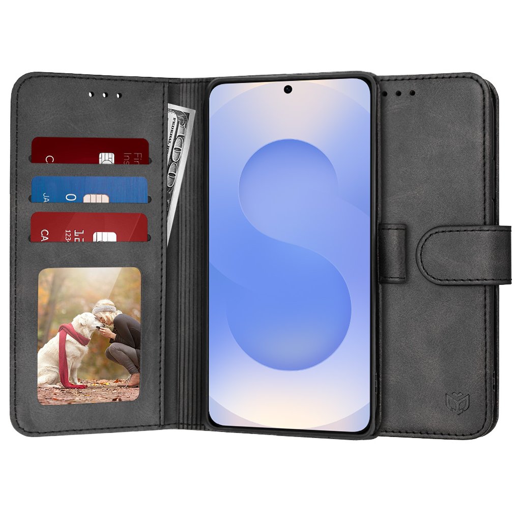 Techsuit Diary Book pre Samsung Galaxy S25 čierna Predstavujeme Techsuit Diary Book – elegantné a funkčné puzdro, ktoré poskytne vášmu telefónu Samsung Galaxy S25 prvotriednu ochranu a zároveň podčiarkne váš štýl. Toto puzdro v klasickej čiernej farbe je navrhnuté tak, aby spĺňalo najvyššie nároky na kvalitu a praktickosť. Dizajn a funkčnosť- Sofistikovaný dizajn v štýle "peňaženky", ktorý kombinuje ochranu s užitočnými funkciami.