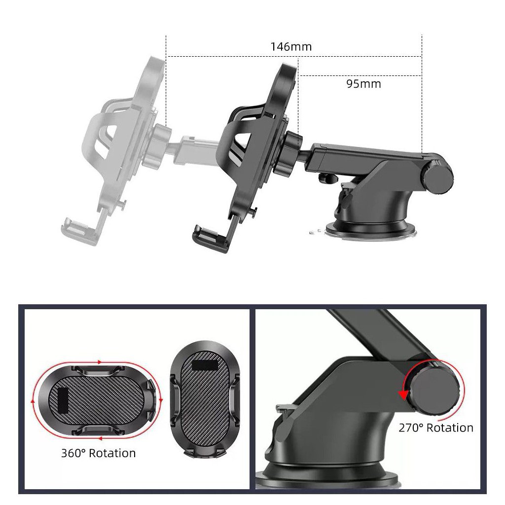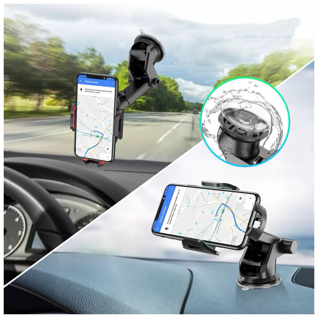 - Upevnenie: Silná prísavka na palubnú dosku alebo čelné sklo