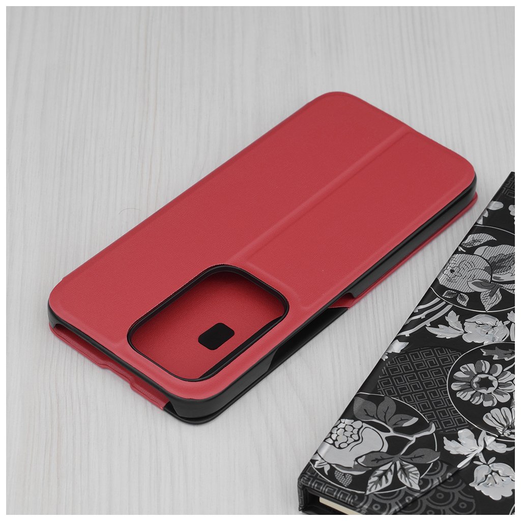 Puzdro Techsuit eFold Series v elegantnej červenej farbe je navrhnuté s dôrazom na funkčnosť a modernú estetiku. Jeho povrch imituje jemnú kožu s decentnou textúrou, ktorá dodáva puzdru luxusný vzhľad a príjemný pocit na dotyk. Jedinečným prvkom je priehľadný prúžok na prednej strane, ktorý umožňuje rýchly náhľad na čas, dátum a notifikácie bez toho, aby ste museli puzdro otvárať. Puzdro je typu "flip", čo znamená, že poskytuje komplexnú ochranu pre celý telefón, vrátane displeja. Vďaka premyslenej konštrukcii je možné puzdro ľahko zložiť do praktického stojanu pre pohodlné sledovanie videí alebo videohovory.