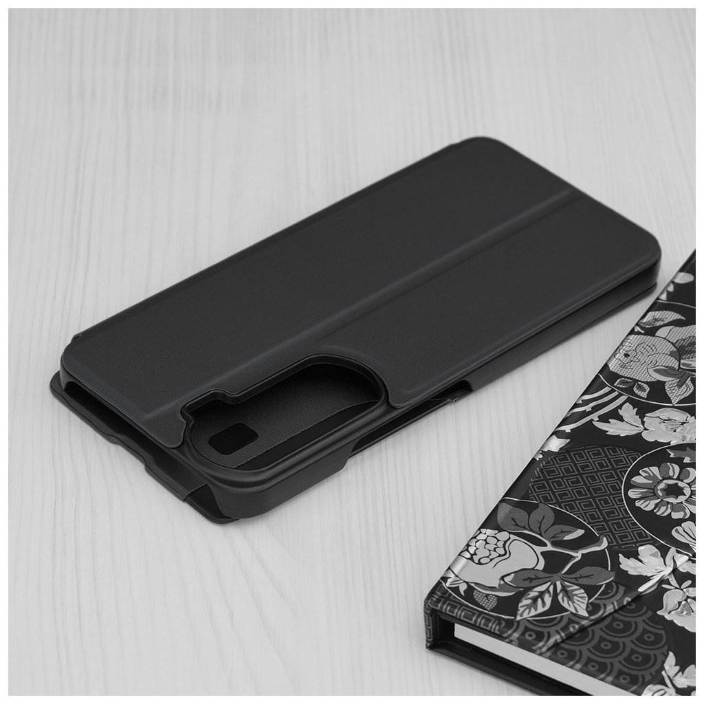 Puzdro Techsuit eFold Series pre Honor 90 Lite v elegantnej čiernej farbe je navrhnuté s dôrazom na minimalizmus a praktickosť. Jeho povrch imituje jemnú textúru kože, čo dodáva telefónu sofistikovaný vzhľad a príjemný pocit na dotyk. Predný odklápací kryt je vybavený priehľadným vertikálnym pruhom, ktorý umožňuje rýchly náhľad na čas a notifikácie bez nutnosti otvárania puzdra. Vďaka premyslenej konštrukcii je možné puzdro ľahko zložiť do praktického stojanu, ideálneho pre sledovanie videí alebo videohovory. Všetky výrezy sú precízne spracované, aby dokonale kopírovali línie telefónu a zaistili neobmedzený prístup ku všetkým portom a fotoaparátu.