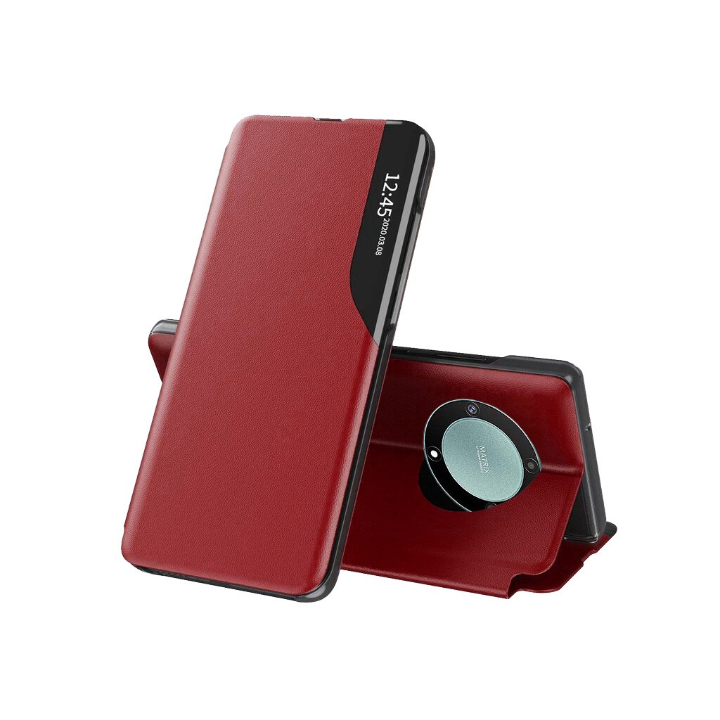 Puzdro Techsuit eFold Series pre Honor Magic5 Lite v elegantnej červenej farbe je navrhnuté s dôrazom na funkčnosť a štýl. Jeho dizajn kombinuje klasickú eleganciu s modernými prvkami. Predná strana puzdra je vyrobená z kvalitného materiálu s jemnou textúrou v sýto červenom odtieni, ktorý dodáva puzdru luxusný vzhľad. Charakteristickým prvkom je priehľadný vertikálny pruh na pravej strane predného krytu, ktorý umožňuje rýchly prehľad o čase a notifikáciách bez nutnosti otvárania puzdra. Čierne okraje puzdra vytvárajú kontrastný a sofistikovaný dojem. Puzdro je možné navyše ľahko zložiť do praktického stojanu, čo oceníte pri sledovaní videí alebo videohovoroch. Na zadnej strane je precízny výrez pre kamerový modul telefónu, ktorý zaisťuje jeho plnú funkčnosť.