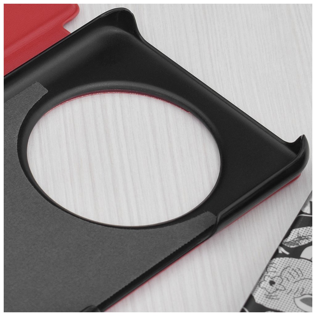 Puzdro Techsuit eFold Series sa pýši sofistikovaným dizajnom s jemnou textúrou, ktorá pripomína kožu a dodáva mu luxusný vzhľad. Jeho červená farba je výrazná a zároveň elegantná, čo z neho robí štýlový doplnok k vášmu zariadeniu. Na prednej strane puzdra nájdete priehľadný vertikálny pruh, ktorý umožňuje jednoduchý náhľad na čas a notifikácie, aniž by ste museli puzdro otvárať. Zadná strana je vybavená precíznym kruhovým výrezom, ktorý dokonale obopína modul fotoaparátu vášho telefónu a zaisťuje jeho plnú funkčnosť bez akéhokoľvek obmedzenia. Vnútorná časť puzdra tvorí odolná čierna vanička, ktorá telefón pevne drží a chráni ho pred nárazmi a pádmi. Vďaka premyslenej konštrukcii je možné puzdro jednoducho zložiť do praktického stojana, ideálneho na sledovanie videí alebo videohovory.