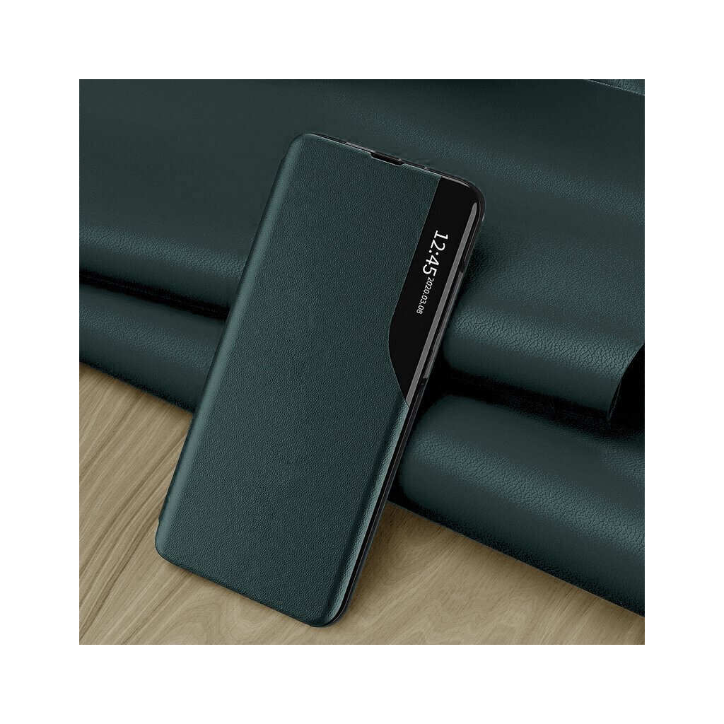 - Predná flipová časť je vybavená priehľadným vertikálnym okienkom pre rýchly náhľad na čas, dátum a notifikácie bez otvárania puzdra.