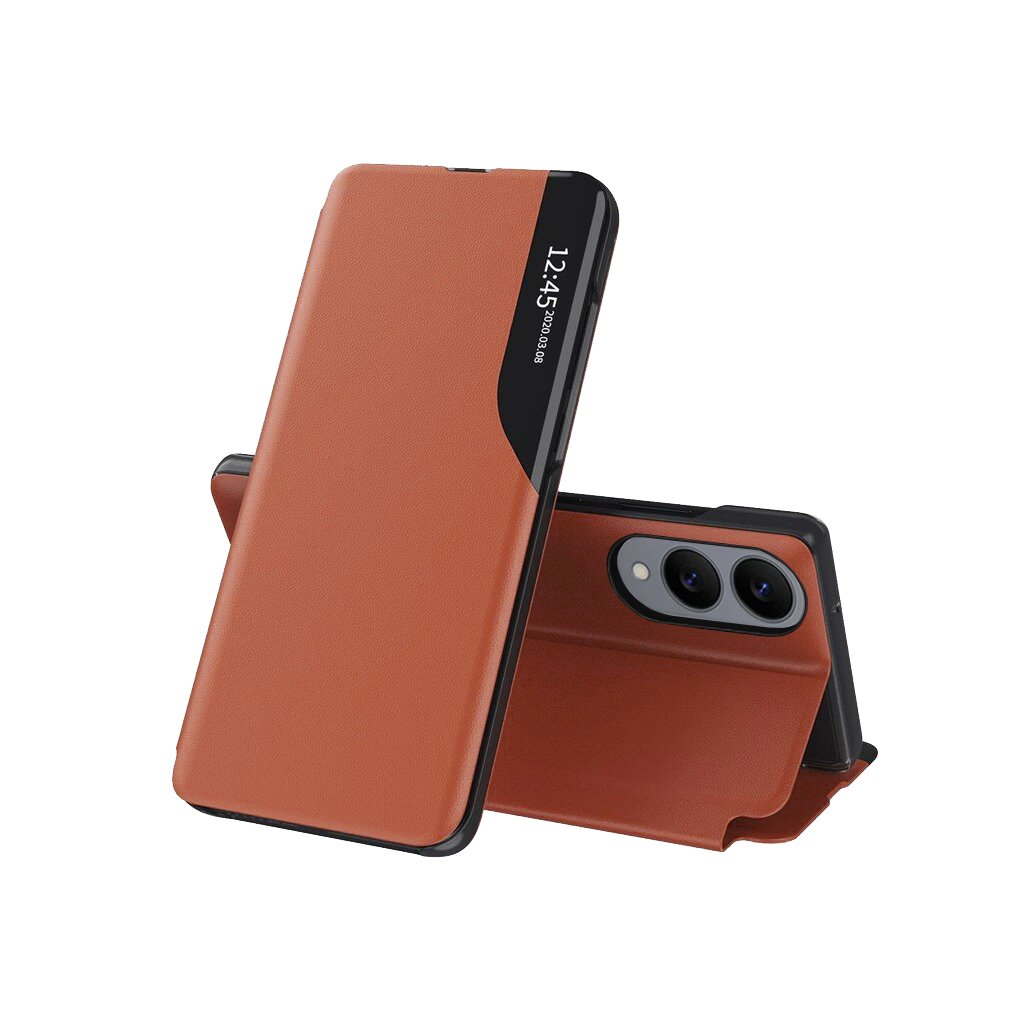 Predný odklápací kryt je vybavený pruhom, ktorý umožňuje rýchly náhľad na čas, dátum a dôležité notifikácie bez nutnosti otvárať puzdro. - Praktický stojan: