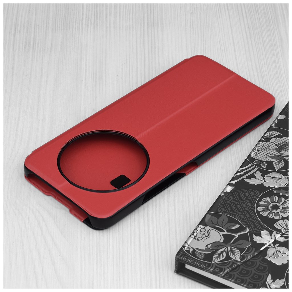 Zadná strana puzdra je vybavená presným kruhovým výrezom, ktorý dokonale obopína modul fotoaparátu vášho telefónu a zaisťuje jeho plnú funkčnosť bez akéhokoľvek obmedzenia. Vďaka svojej konštrukcii je možné puzdro ľahko zložiť do praktického stojančeka, čo je ideálne pre sledovanie videí alebo videohovory. Čierne okraje puzdra potom elegantne kontrastujú s červenou farbou a podčiarkujú celkový moderný vzhľad.