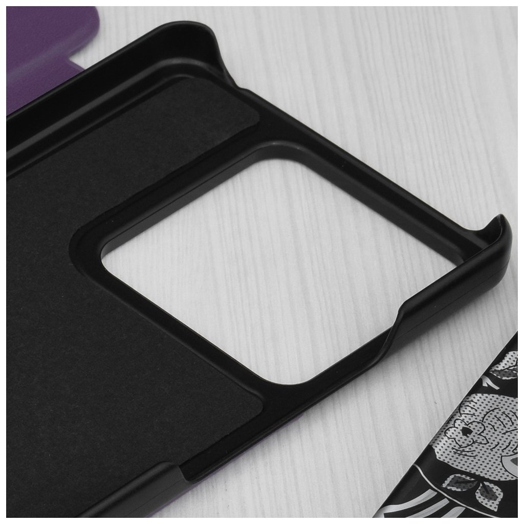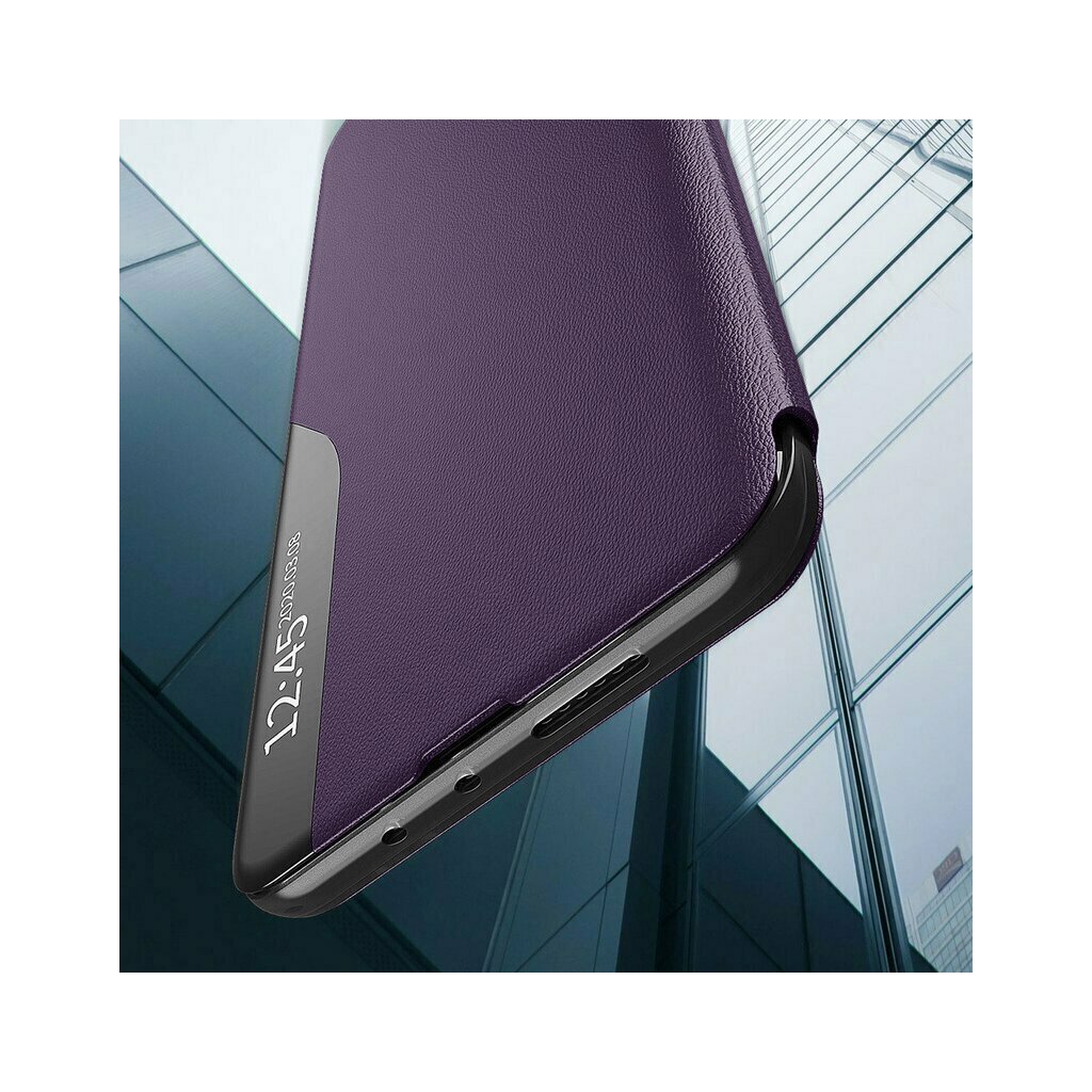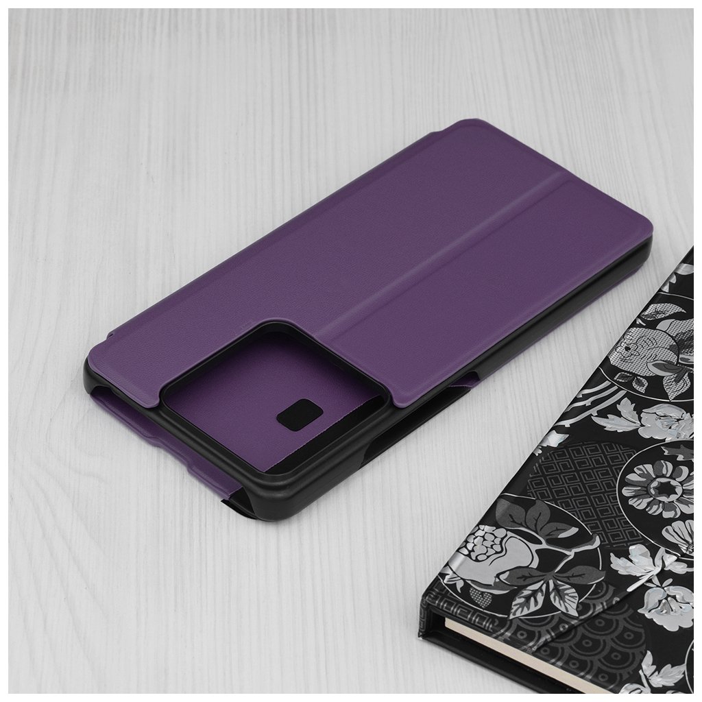 Puzdro Techsuit eFold Series sa pýši sofistikovaným fialovým odtieňom a jemne textúrovaným povrchom, ktorý je príjemný na dotyk a zároveň zaisťuje pevný úchop. Jeho dizajn typu "flip" poskytuje komplexnú ochranu pre displej aj zadnú stranu telefónu. Kľúčovým prvkom je **priehľadný vertikálny pruh** na prednej strane, ktorý umožňuje rýchly náhľad na čas, dátum a notifikácie bez toho, aby ste museli puzdro otvárať. Čierne okraje puzdra dodávajú celkovému vzhľadu elegantný kontrast. Vďaka premyslenej konštrukcii možno puzdro ľahko zložiť do praktického **stojančeka**, čo je ideálne pre sledovanie videí alebo videohovory bez nutnosti držať telefón v ruke.Parametre produktu: