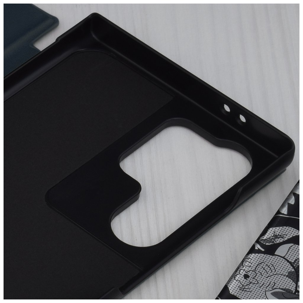 - Vonkajšia strana je vyrobená z materiálu s jemnou textúrou imitujúcou kožu, čo dodáva puzdru luxusný vzhľad a príjemný pocit na dotyk.