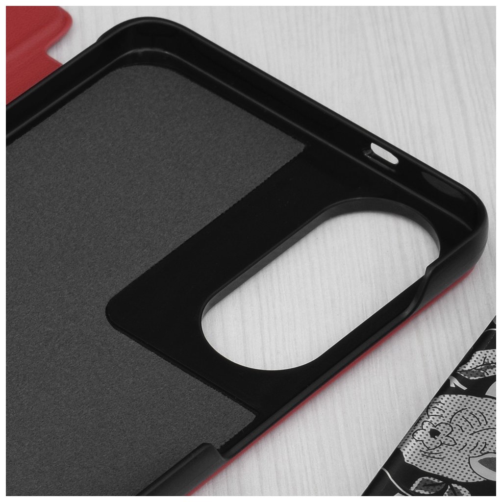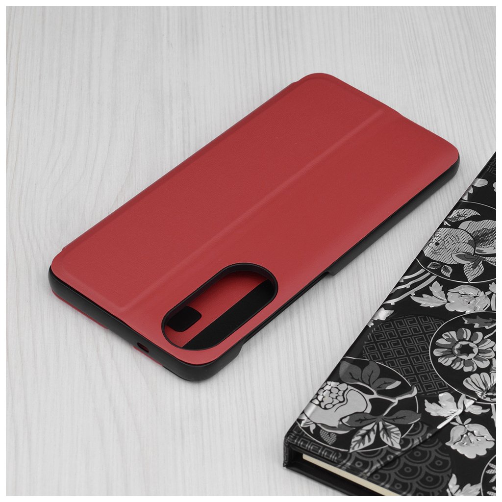 Puzdro Techsuit eFold Series sa pýši sofistikovaným dizajnom, ktorý podčiarkuje eleganciu vášho telefónu. Vonkajšia strana je vyrobená z kvalitného materiálu s jemnou textúrou v atraktívnej červenej farbe, ktorá dodáva puzdru luxusný vzhľad a príjemný pocit na dotyk. Kľúčovým prvkom je priehľadný vertikálny pruh na prednej strane, ktorý umožňuje jednoduchý náhľad na čas, dátum a dôležité notifikácie, aniž by ste museli puzdro otvárať.
