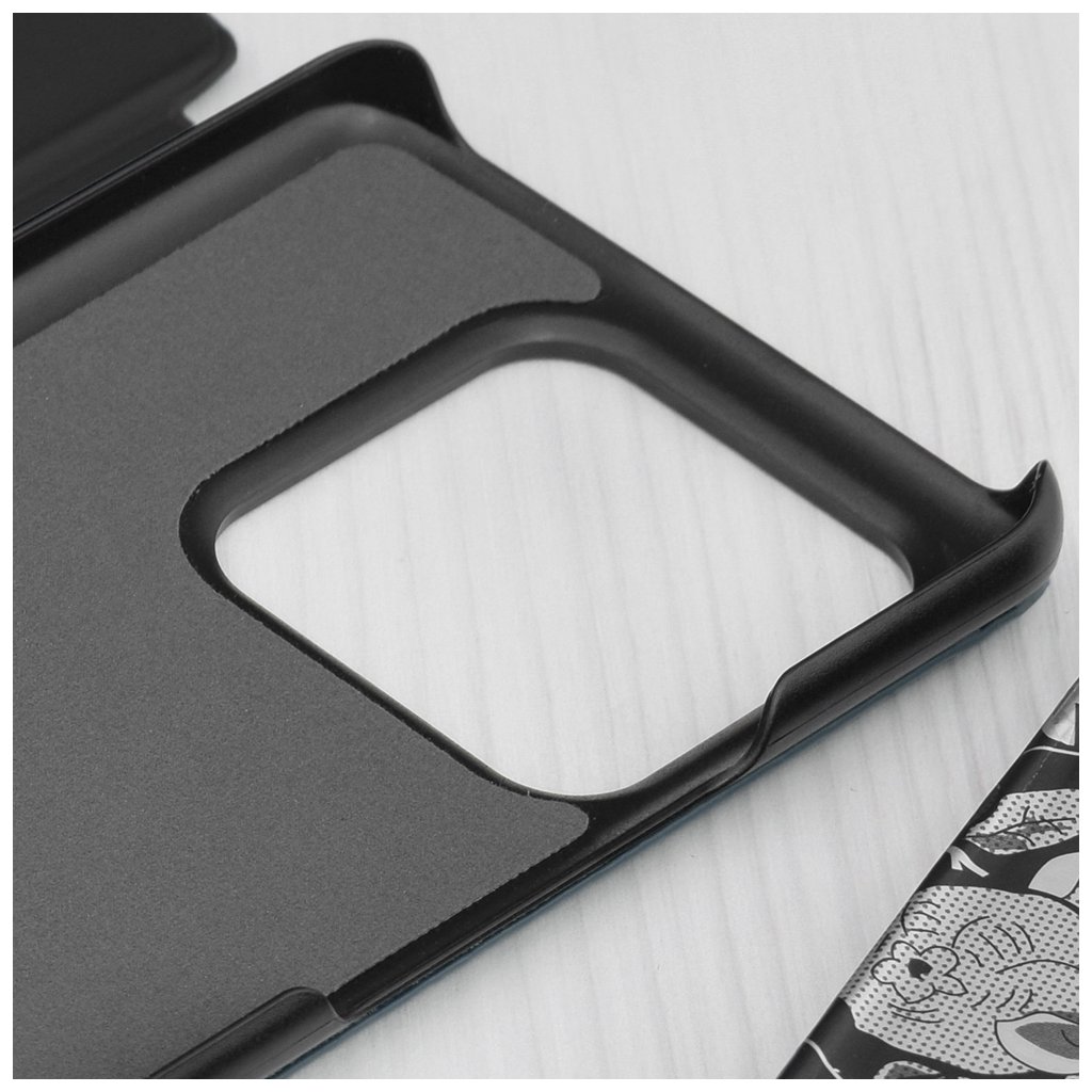 - Priehľadný vertikálny pás: Predný odklápací kryt je vybavený šikovným priehľadným pásom, ktorý umožňuje ľahký prehľad o čase a notifikáciách bez nutnosti otvárať puzdro.