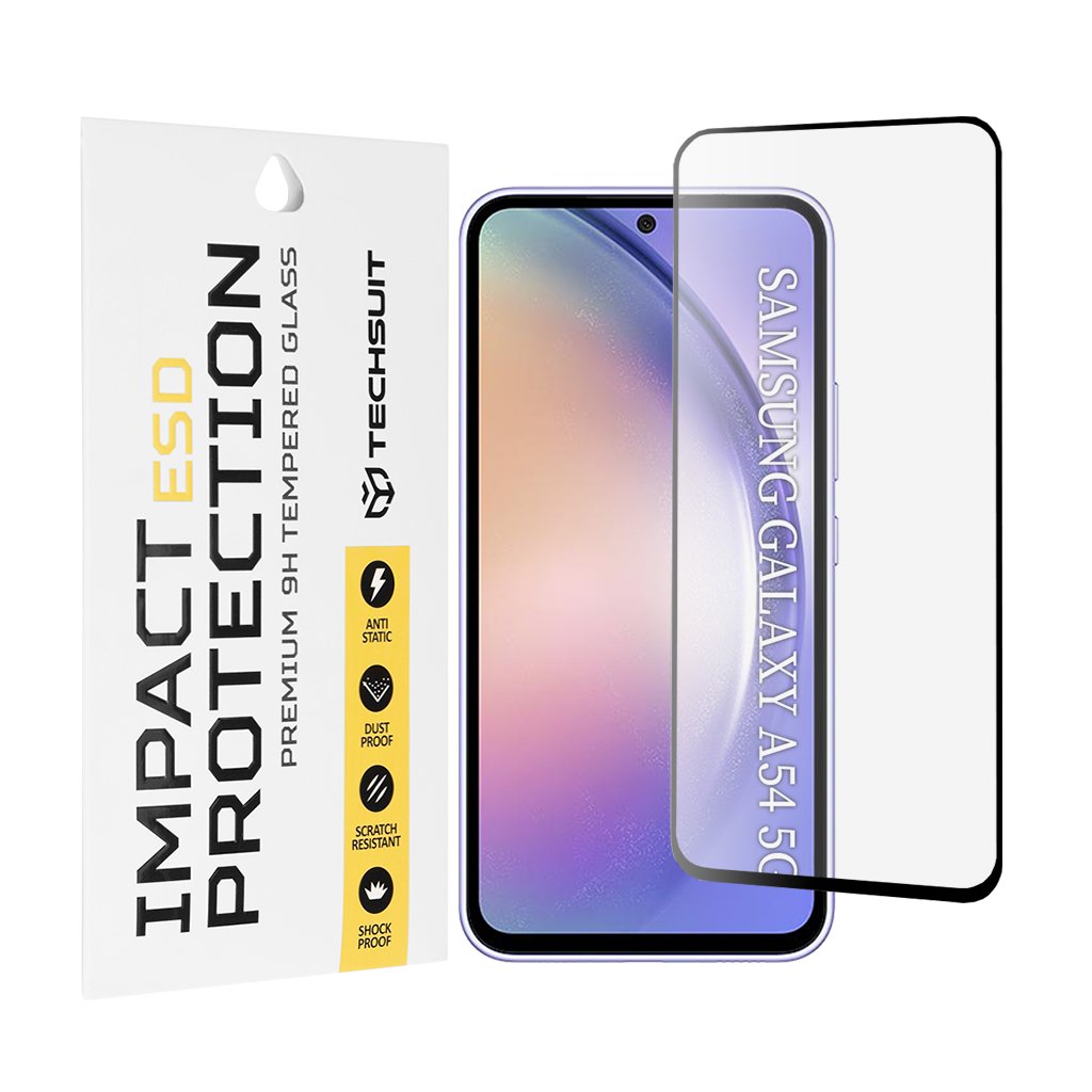 Táto ochranná sklá Techsuit ESD Glass sa vyznačujú minimalistickým a funkčným dizajnom. Sklo je dokonale priehľadné, čo zaisťuje nezakreslený vizuálny zážitok. Okraje sú elegantne lemované čiernym rámčekom, ktorý dokonale splynie s dizajnom telefónu Samsung Galaxy A54 a dodá mu prémiový vzhľad. Precízne výrezy pre prednú kameru a senzory sú samozrejmosťou, čo zaručuje plnú funkčnosť bez akýchkoľvek obmedzení.
