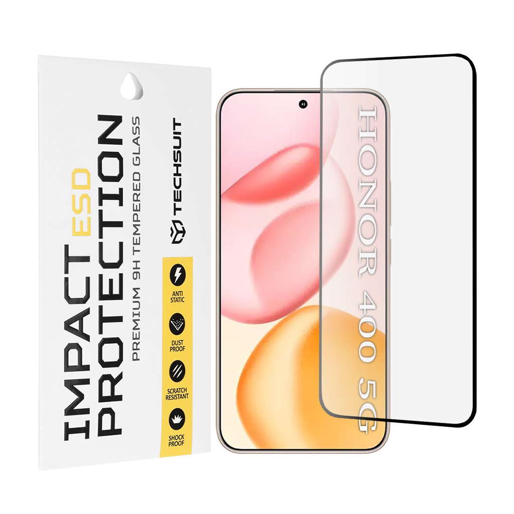 Táto prémiová ochrana displeja Techsuit ESD Glass je navrhnutá s ohľadom na maximálnu funkčnosť a estetiku. Jedná sa o číre tvrdené sklo s precízne zaoblenými hranami, ktoré dokonale kopíruje tvar displeja telefónu Honor 400. Vďaka svojej transparentnosti a tenkému profilu je po aplikácii takmer neviditeľná a zachováva pôvodný vzhľad aj jas displeja. Sklo je vybavené výrezom pre prednú kameru a senzory, čo zaisťuje ich plnú funkčnosť. Na obale produktu je zdôraznená ESD ochrana, ktorá prispieva k bezpečnej manipulácii a inštalácii.