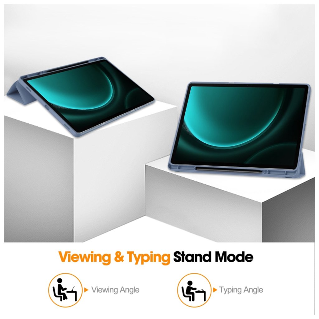 Dizajn puzdra Techsuit Flex sa vyznačuje minimalistickými líniami a precíznym spracovaním. Jeho tenký profil zachováva pôvodnú eleganciu tabletu, zatiaľ čo mäkký povrch príjemný na dotyk dodáva luxusný pocit. Integrovaný držiak na stylus S Pen je šikovne umiestnený na zadnej strane, čo zaisťuje jeho bezpečné uloženie a ľahký prístup, bez toho, aby narúšal celkový vzhľad. Všetky výrezy sú presné a dokonale zladené, čo umožňuje plné využitie všetkých funkcií tabletu bez obmedzenia. Zosilnené rohy efektívne absorbujú nárazy a minimalizujú riziko poškodenia pri pádoch. Predný kryt slúži ako multifunkčný stojan, ktorý umožňuje nastavenie tabletu do dvoch optimálnych polôh – pre pohodlné sledovanie obsahu a pre efektívne písanie. Puzdro je navrhnuté tak, aby nebránilo plnému zobrazeniu displeja a zaisťovalo bezproblémové ovládanie.