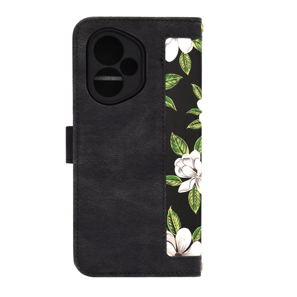 Puzdro FlipCraft Kvety úsvitu zaujme svojim sofistikovaným vzhľadom. Základom je elegantná čierna farba, ktorá je na prednej strane a čiastočne aj na zadnej strane oživená nádherným kvetinovým motívom. Biele kvety s jemnými zelenými lístkami vytvárajú svieži a nadčasový vzor, ktorý dodá vášmu telefónu šmrnc.
