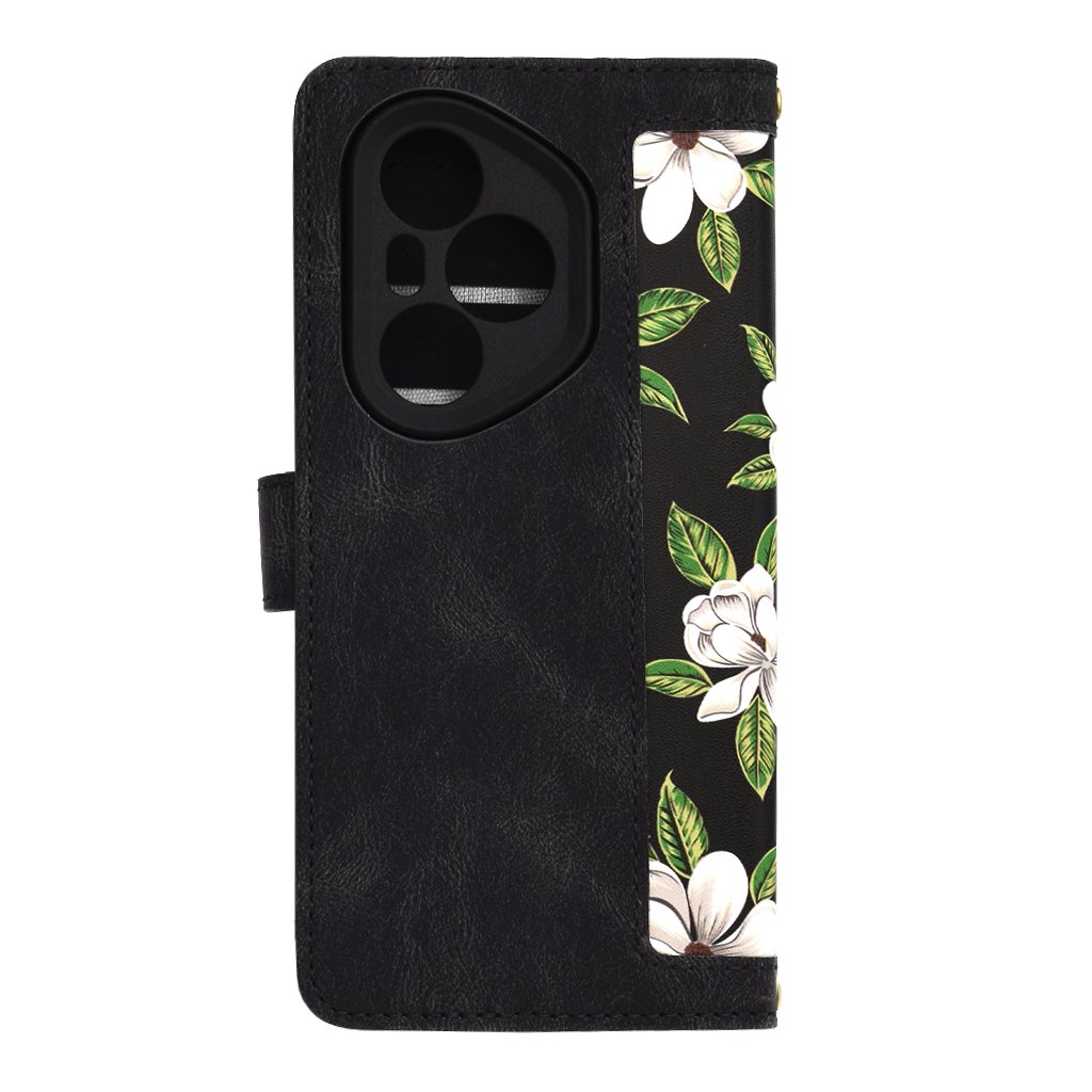 - Elegantný základ: Puzdro sa pýši sofistikovaným čiernym základom, ktorý je elegantne doplnený motívom bielych kvetov s jemnými zelenými lístkami.